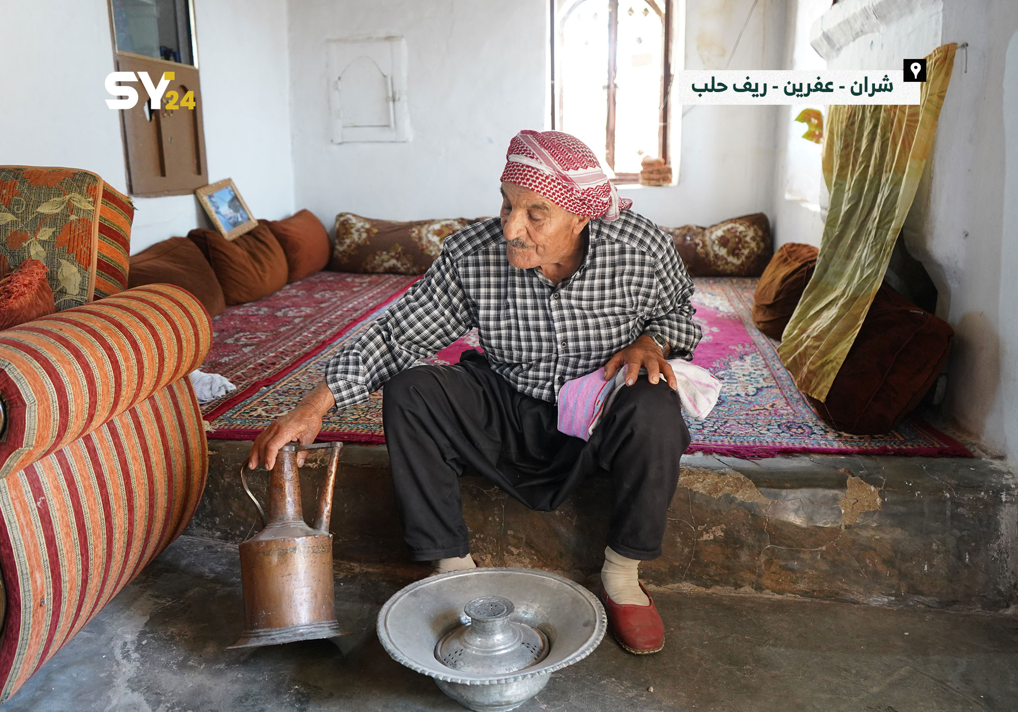 يعيش العم “عبد المنان حسكو” في ناحية شران بريف عفرين ويبلغ من العمر 80 عاماً. في منزل يتجاوز عمره 100 عام.
