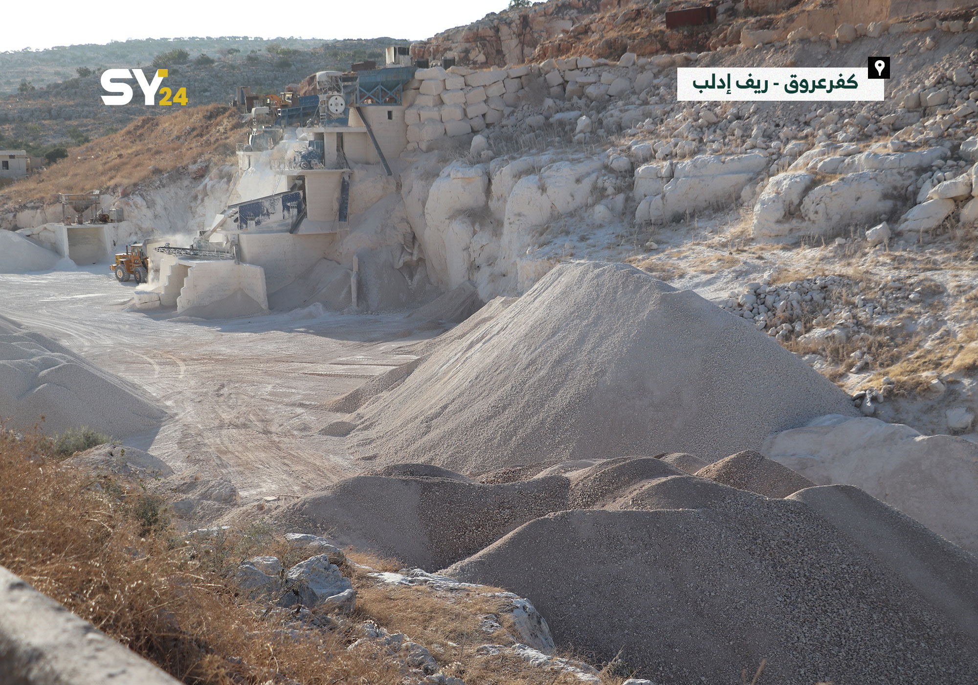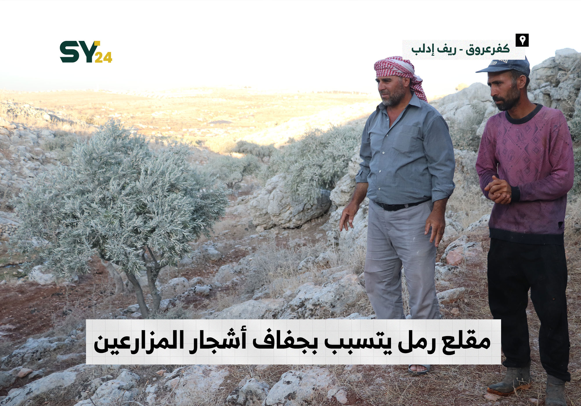 يناشد أصحاب الأراضي الزراعية في منطقة كفرعروق بريف إدلب لإيجاد حل لمقلع رمال يتسبب بجفاف أشجارهم بسبب تأثرها بالرمل