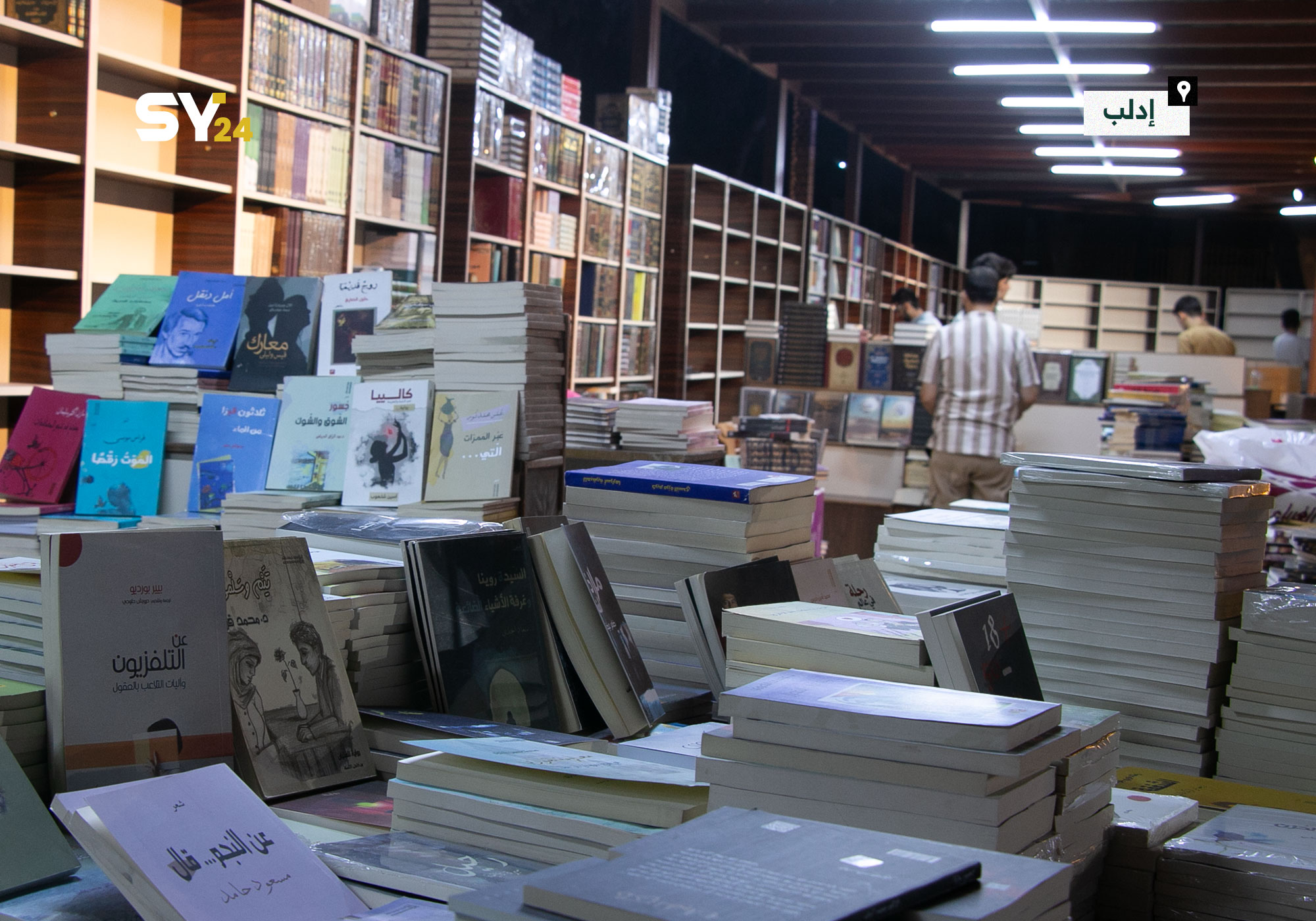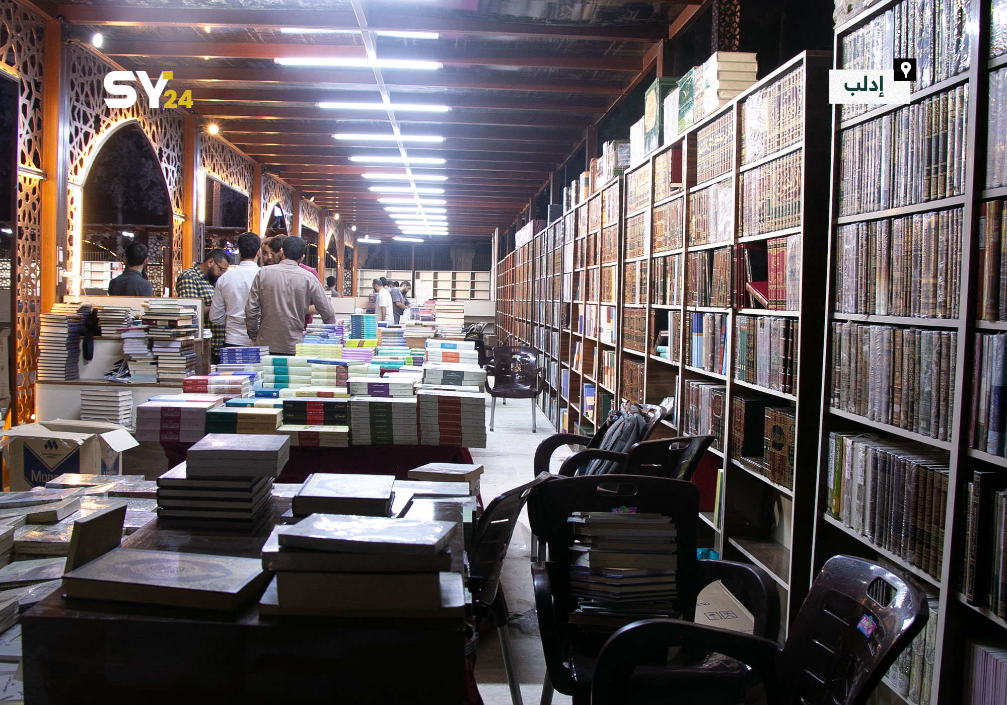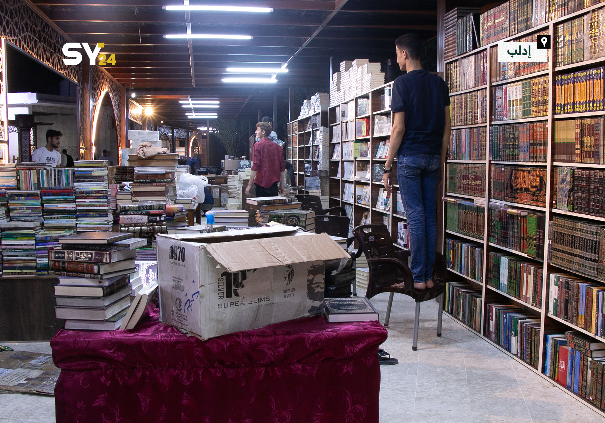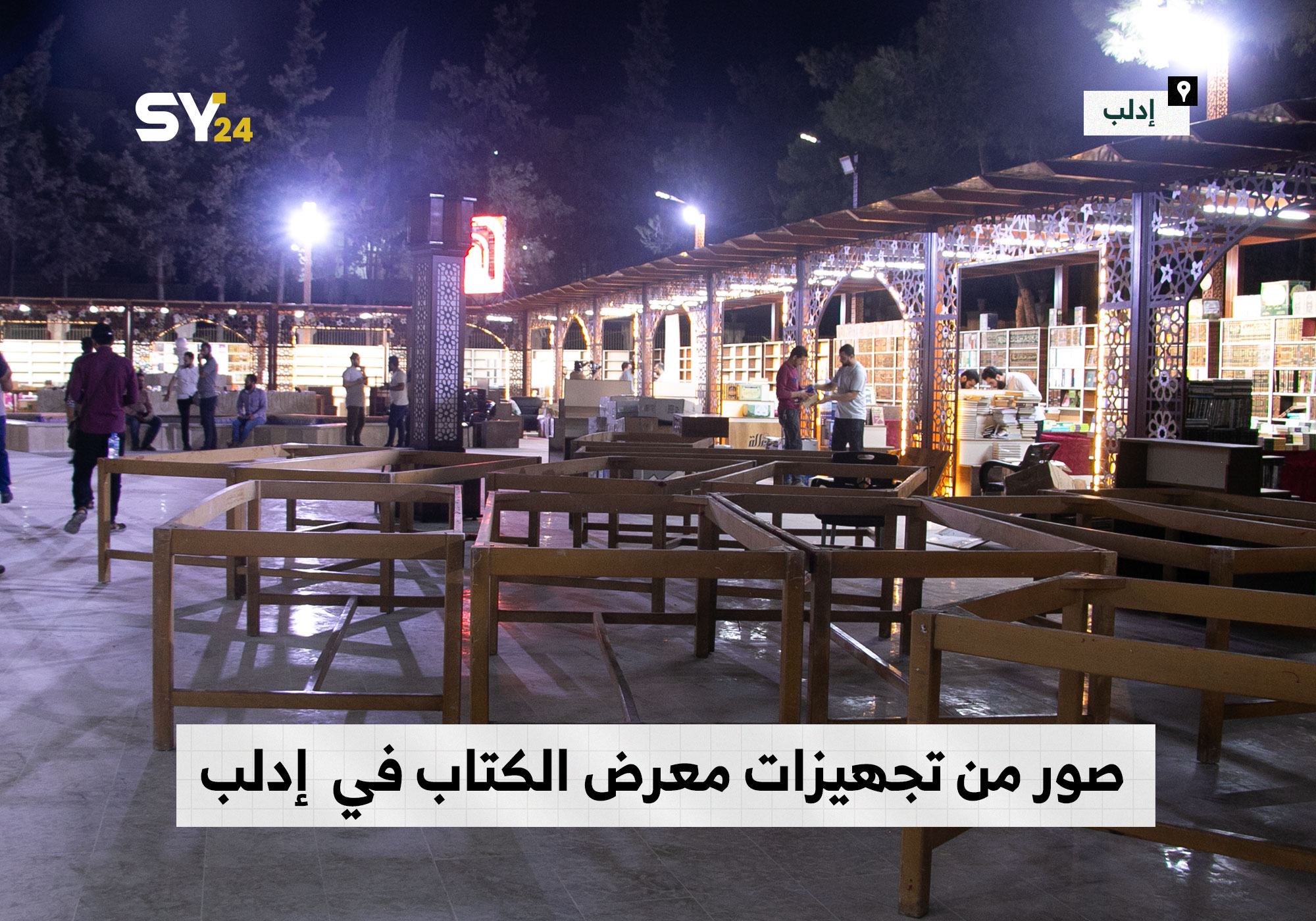 صور من تجهيزات معرض الكتاب في مدينة ادلب للعام