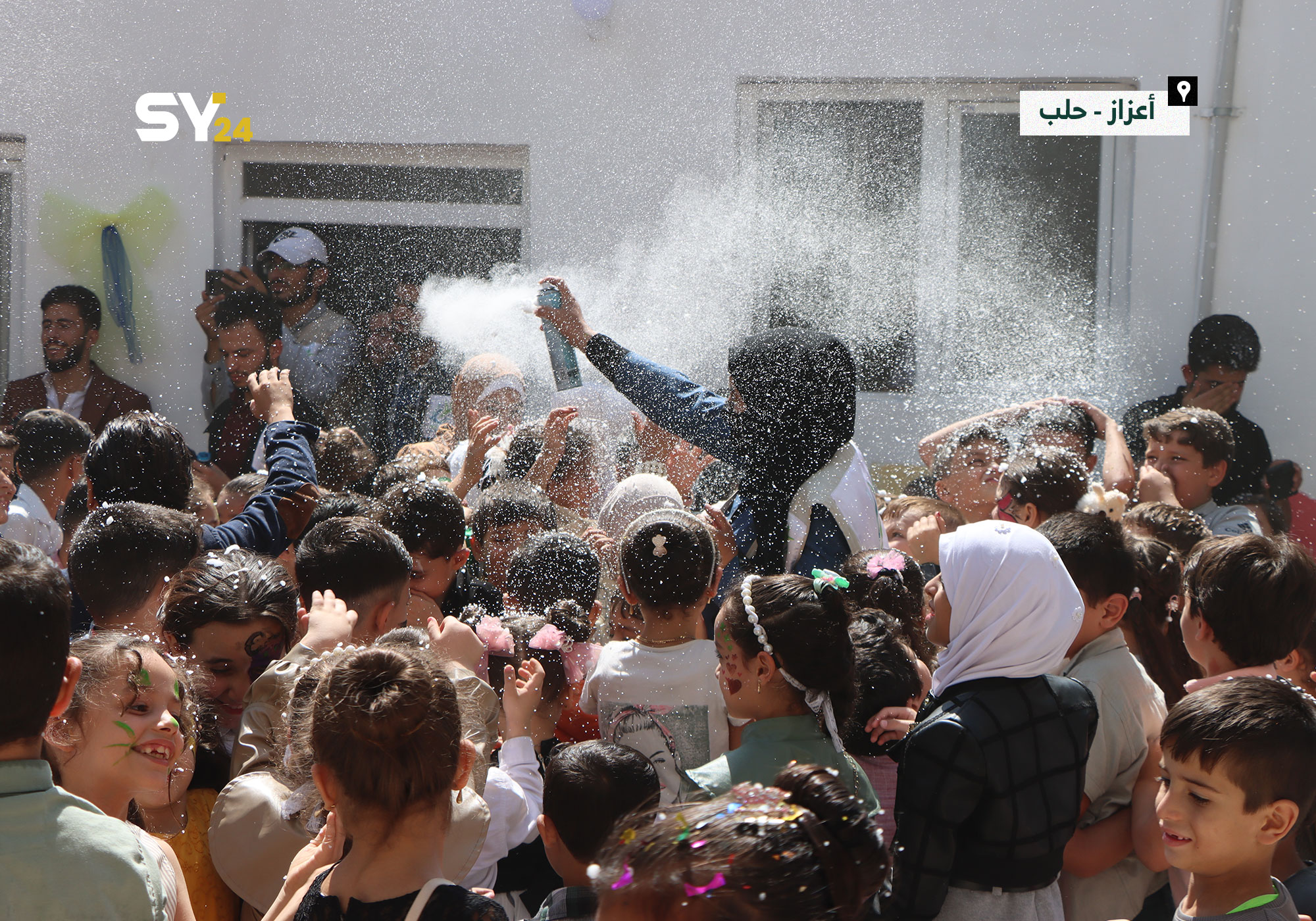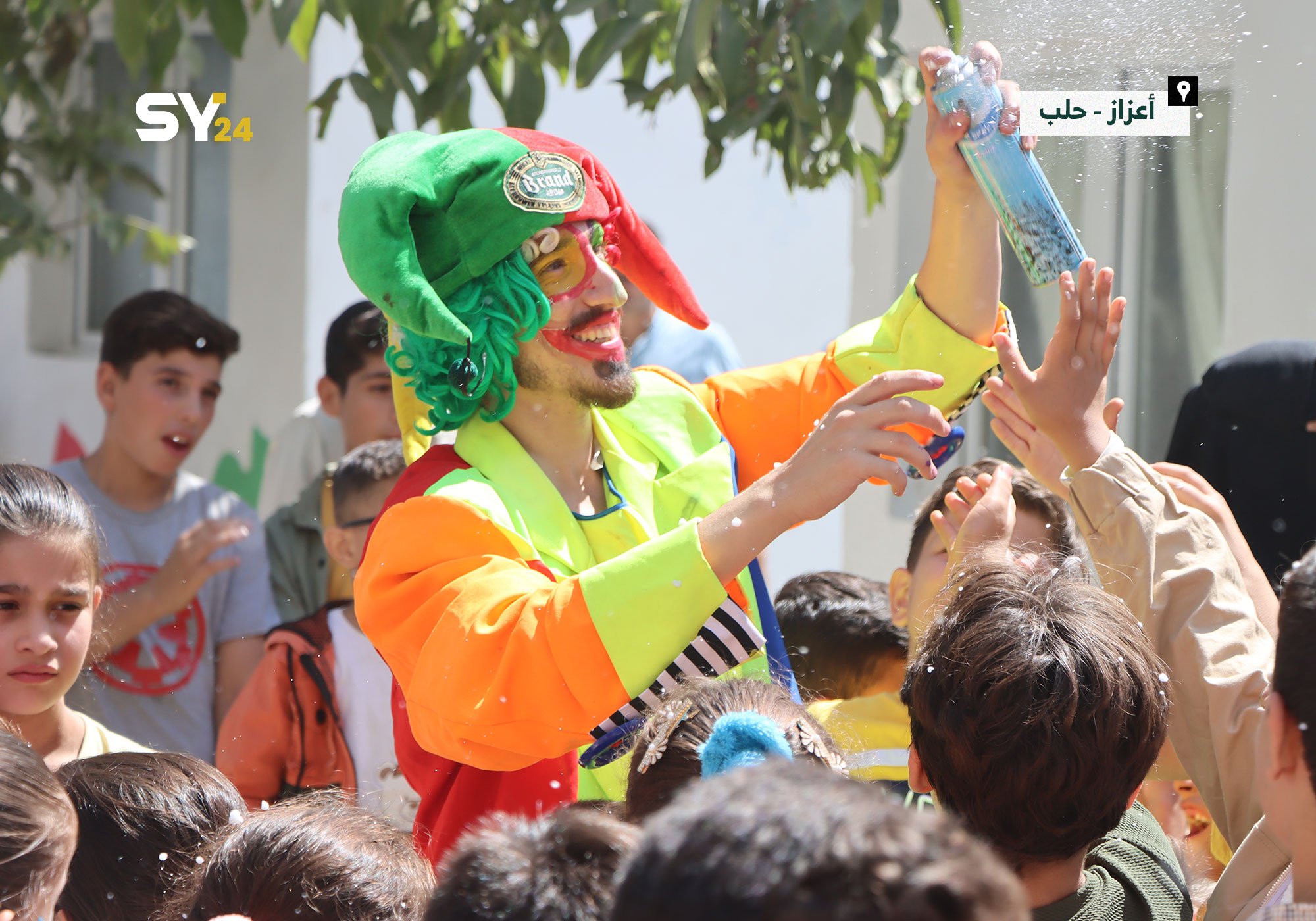 حفل ونشاط ترفيهي للأطفال في مدينة أعزاز، مع بدء العام الدراسي الجديد.