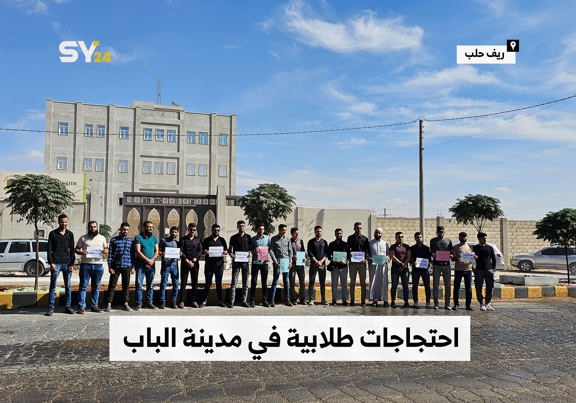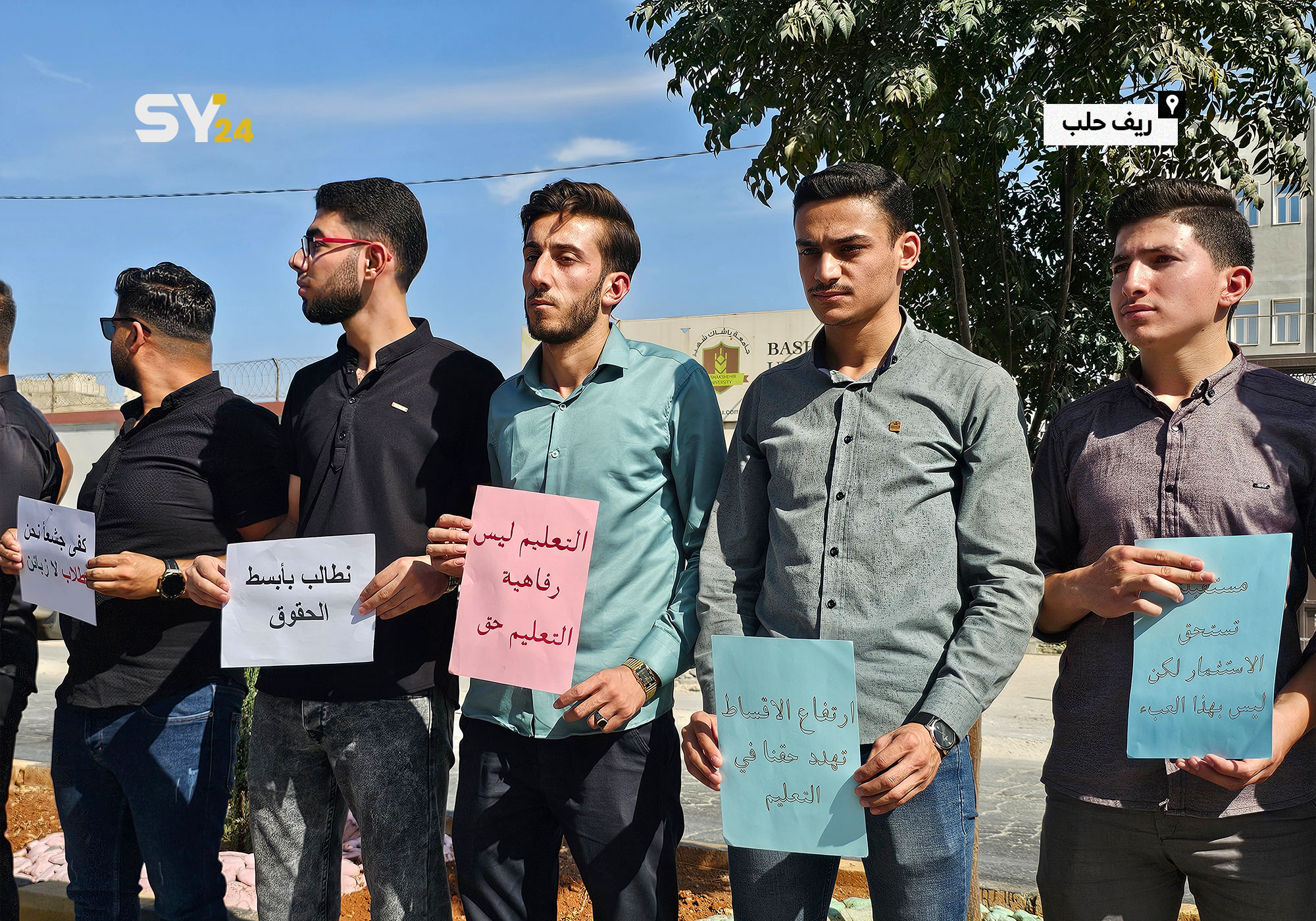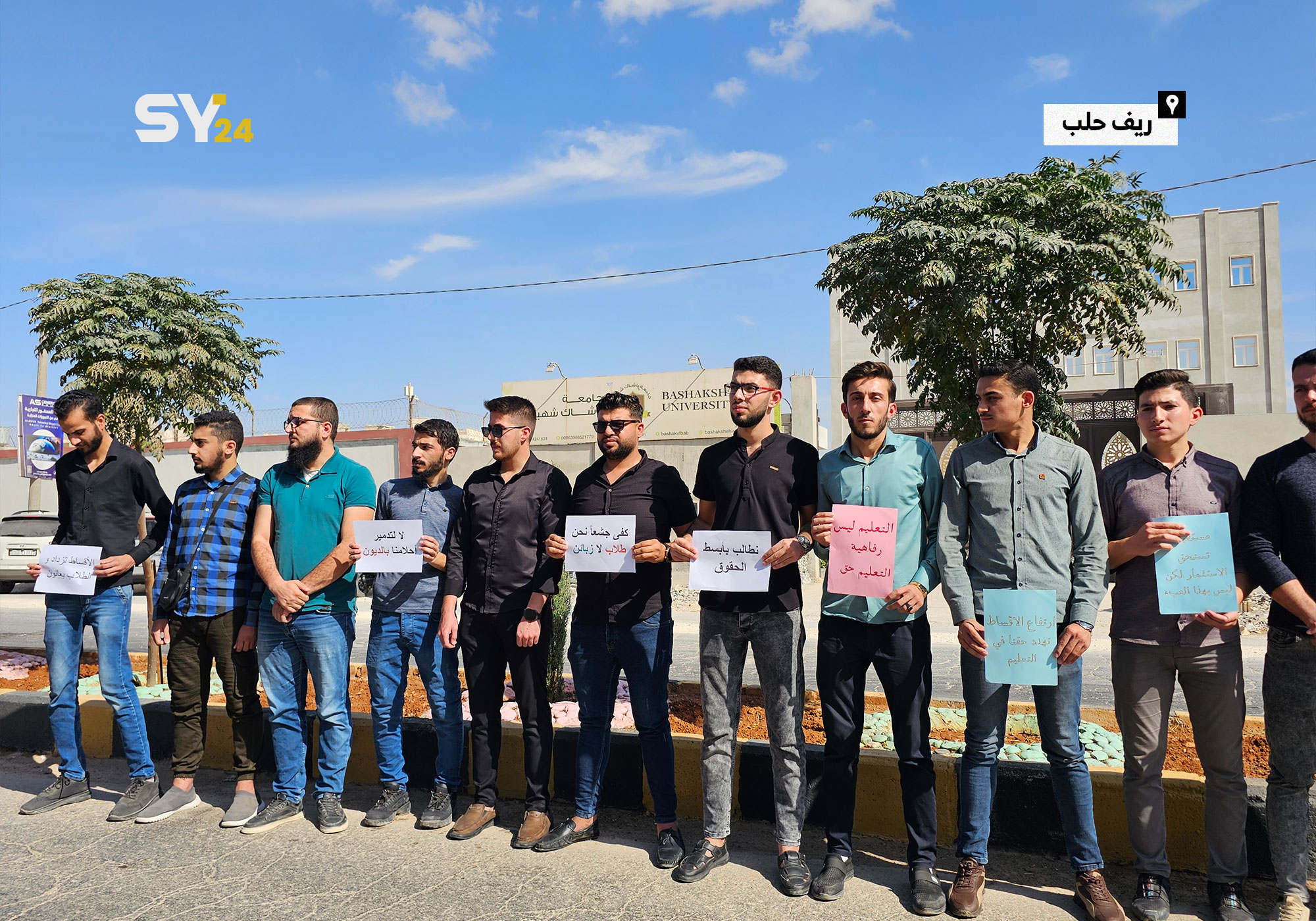 طلاب في مدينة الباب ينظمون وقفة اجتجاجية بسبب رفع أقساط جامعة باشاك شهير.