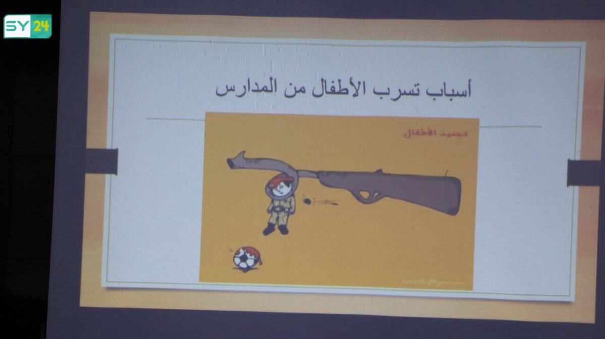 وناقش الحضور في الندوة من الجانب الآخر أهمية محاربة التطرف وإبعاد الأطفال عن الأفكار المتعصبة، في ظل تسربهم من المدارس، وخوفاً عليهم من التأثر بالواقع المحيط، وحرصاً على عدم انخراطهم سواءً في تنظيمات متطرفة أو حتى أي فصيل عسكري آخر، وانطلاقاً من هذا المبدأ كانت الندوة بعنوان “العلم سلاحي”.