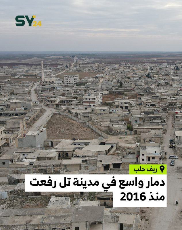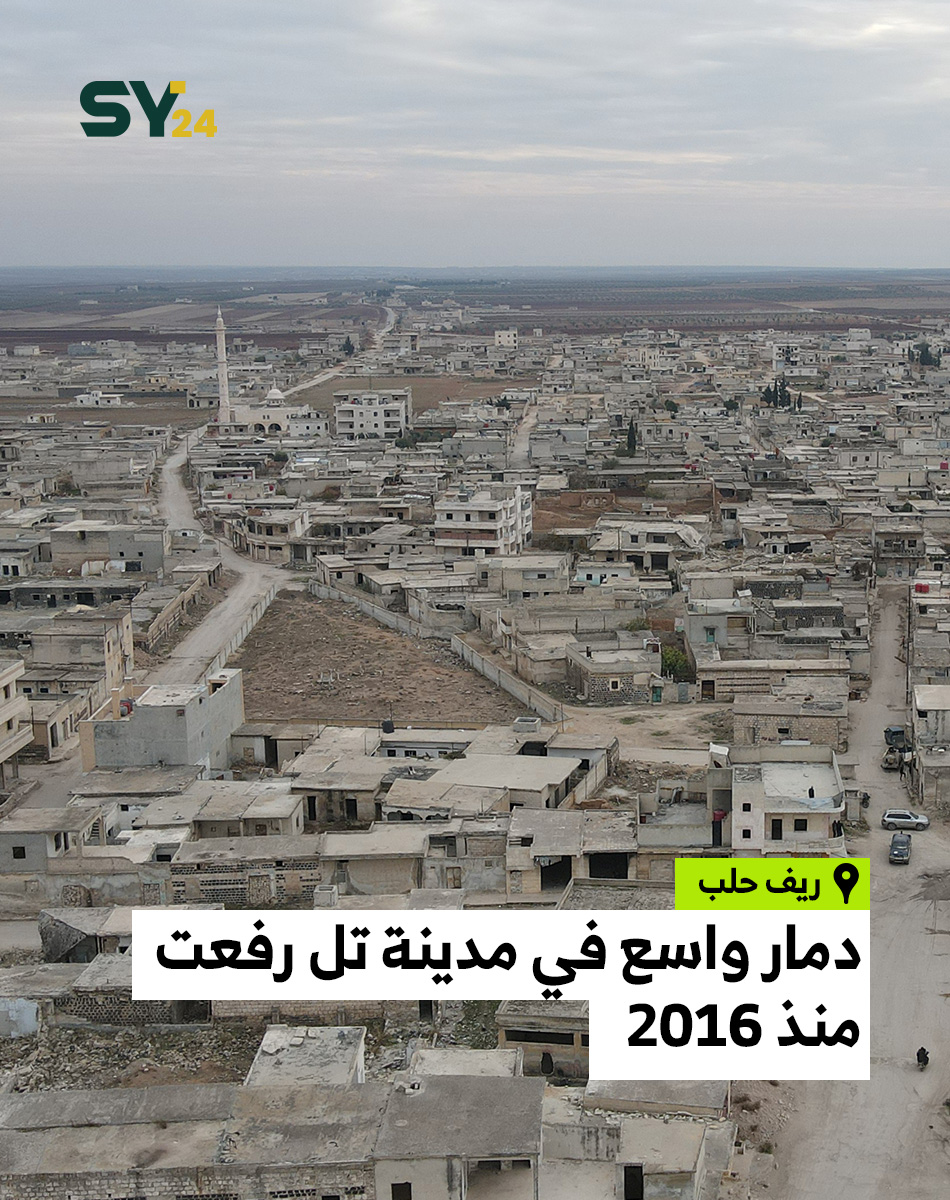 تُظهر الصور حجم الدمار الكبير الذي لحق بمدينة تل رفعت بريف حلب، نتيجة القصف المكثف الذي تعرضت له من قبل الطائرات الروسية في عام 2016.
