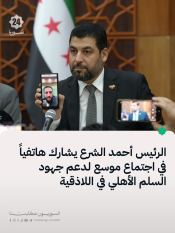 الرئيس أحمد الشرع يشارك هاتفياً في اجتماع موسع لدعم جهود السلم الأهلي في اللاذقية