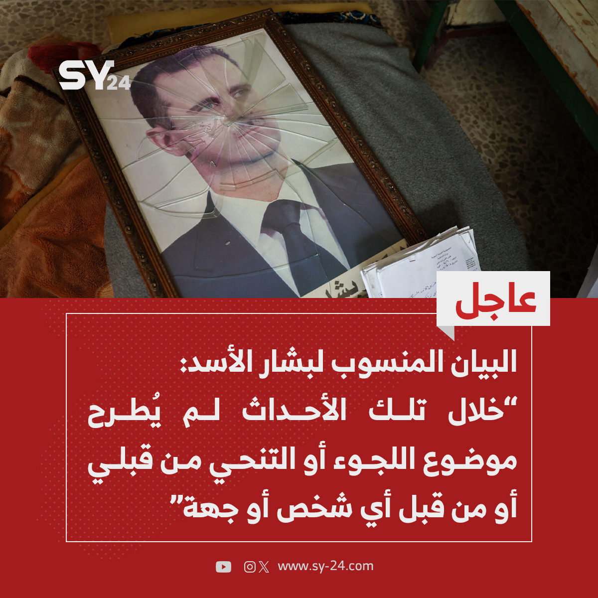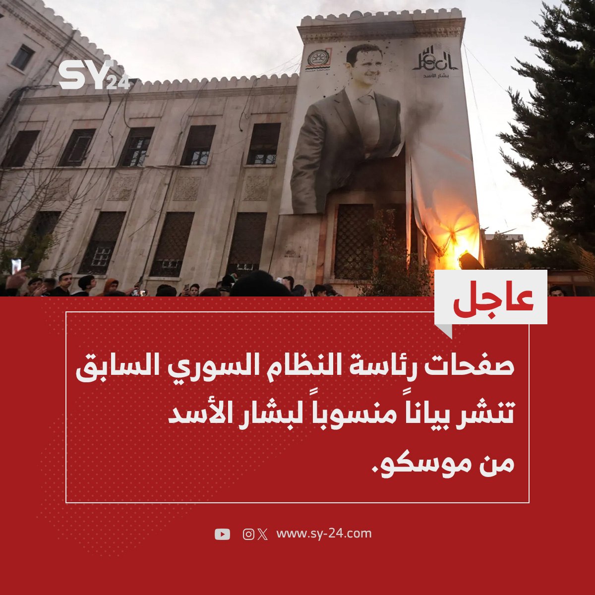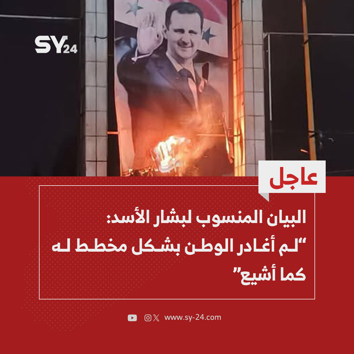 الصفحة الرسمية للرئاسة السورية السابقة تنشر بيانا منسوبا للرئيس المخلوع #بشار_الأسد