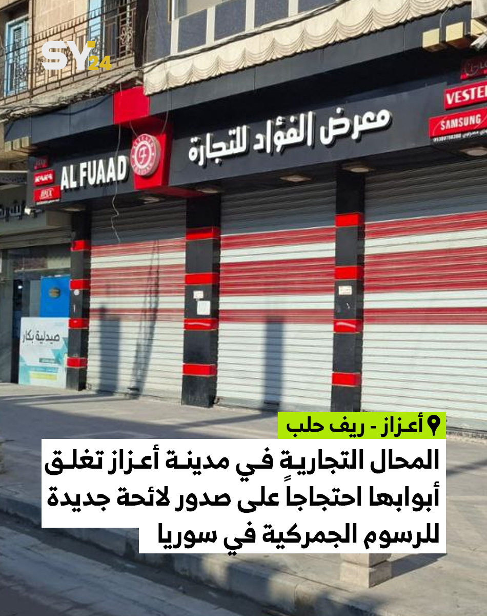 إضراب تجاري في أعزاز رفضاً لرفع التعرفة الجمركية: صدمة اقتصادية واحتجاج شعبي