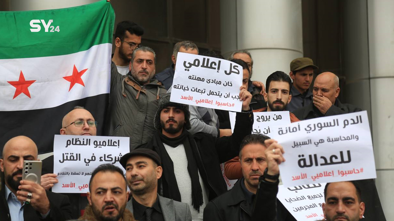 وشدد المحتجون على أنهم لا يستهدفون الإعلاميين فقط، بل يطالبون بمحاسبة كل من تورط في سفك دماء السوريين، سواء كانوا إعلاميين أو مسؤولين أو غيرهم، مؤكدين ضرورة إخضاعهم لمحاكمات عادلة وفق مبادئ العدالة الانتقالية، باعتبارها السبيل لتحقيق المصالحة الوطنية وضمان عدم إفلات الجناة من العقاب.