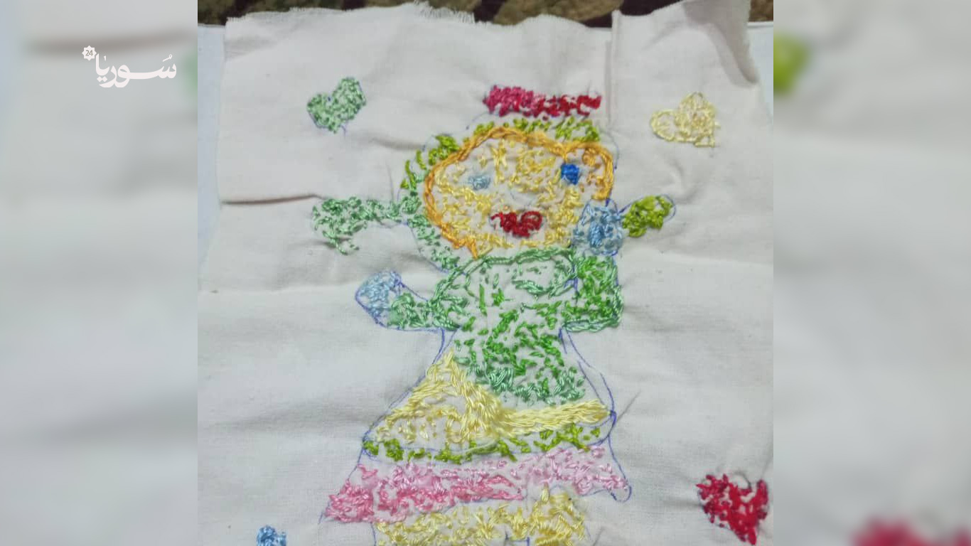 تعلمت فرح بفضل والدتها كيف تمسك القلم، وبدأت بمحاولات الرسم، ثم انتقلت لتعلم الطرز بالإبرة والخيط. تقول أم فرح: “في البداية، كنت أجرب معها ترميم ملابسها بخياطة بسيطة أو بعمل بعض الغرز الصغيرة، ثم بدأت أجلب لها رسومات للكنفة، وأحياناً كنت أرسم لها الصور على القماش لتقوم بتطريزها، وأصبحت تستخدم يديها في العمل وتستمتع به”.