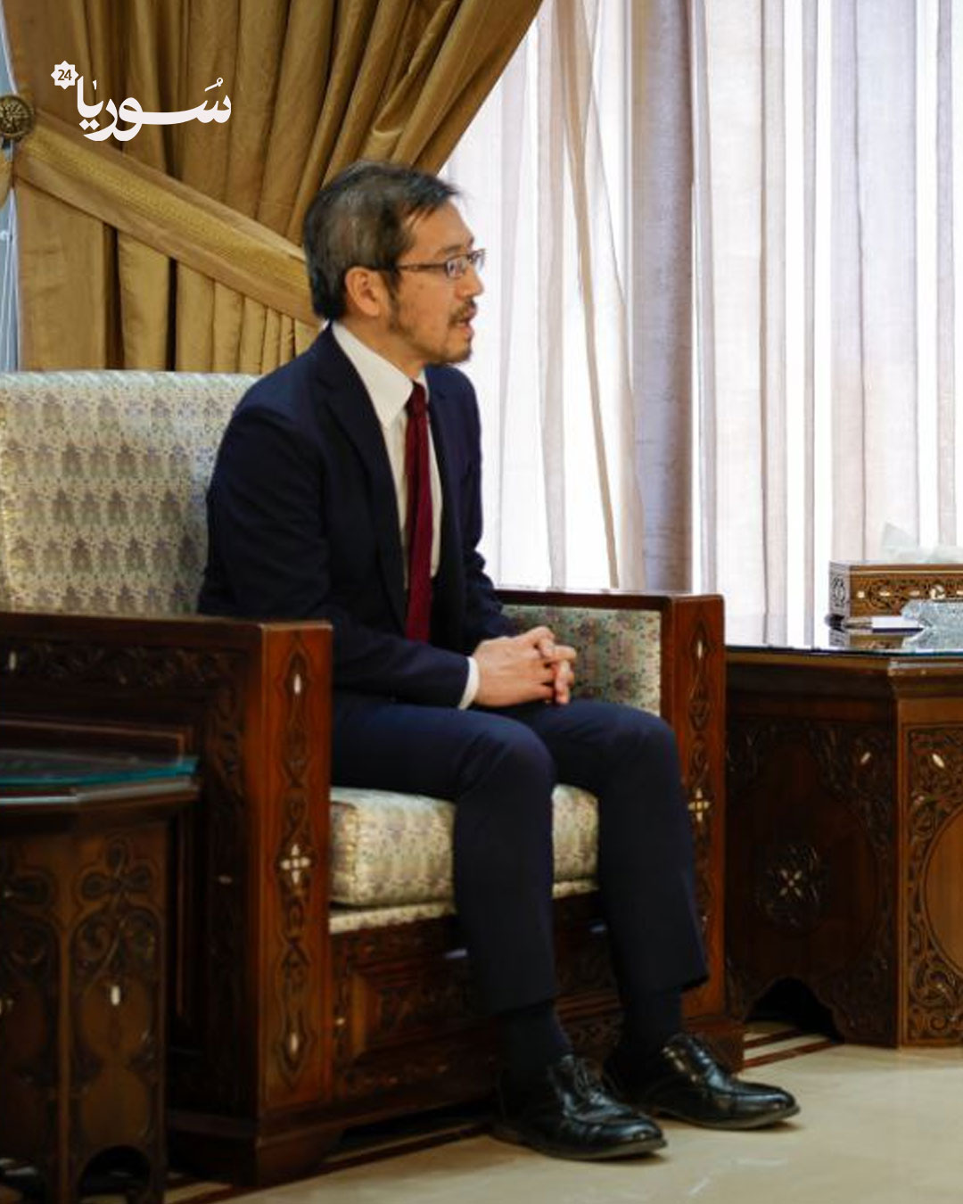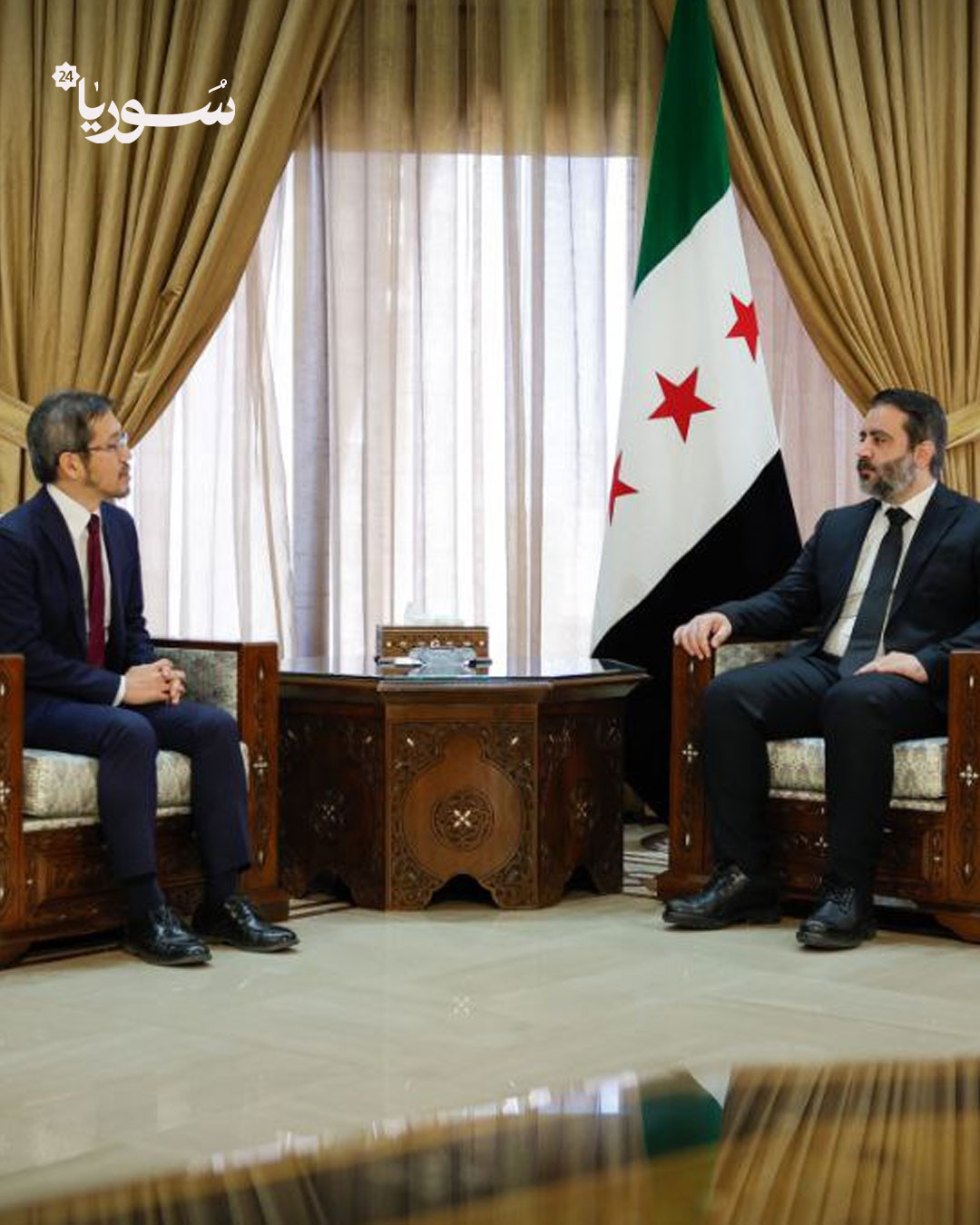 وزير الخارجية أسعد الشيباني يلتقي القائم بأعمال السفارة اليابانية في دمشق أكيهيرو تسوجي لبحث العلاقات الثنائية بين البلدين