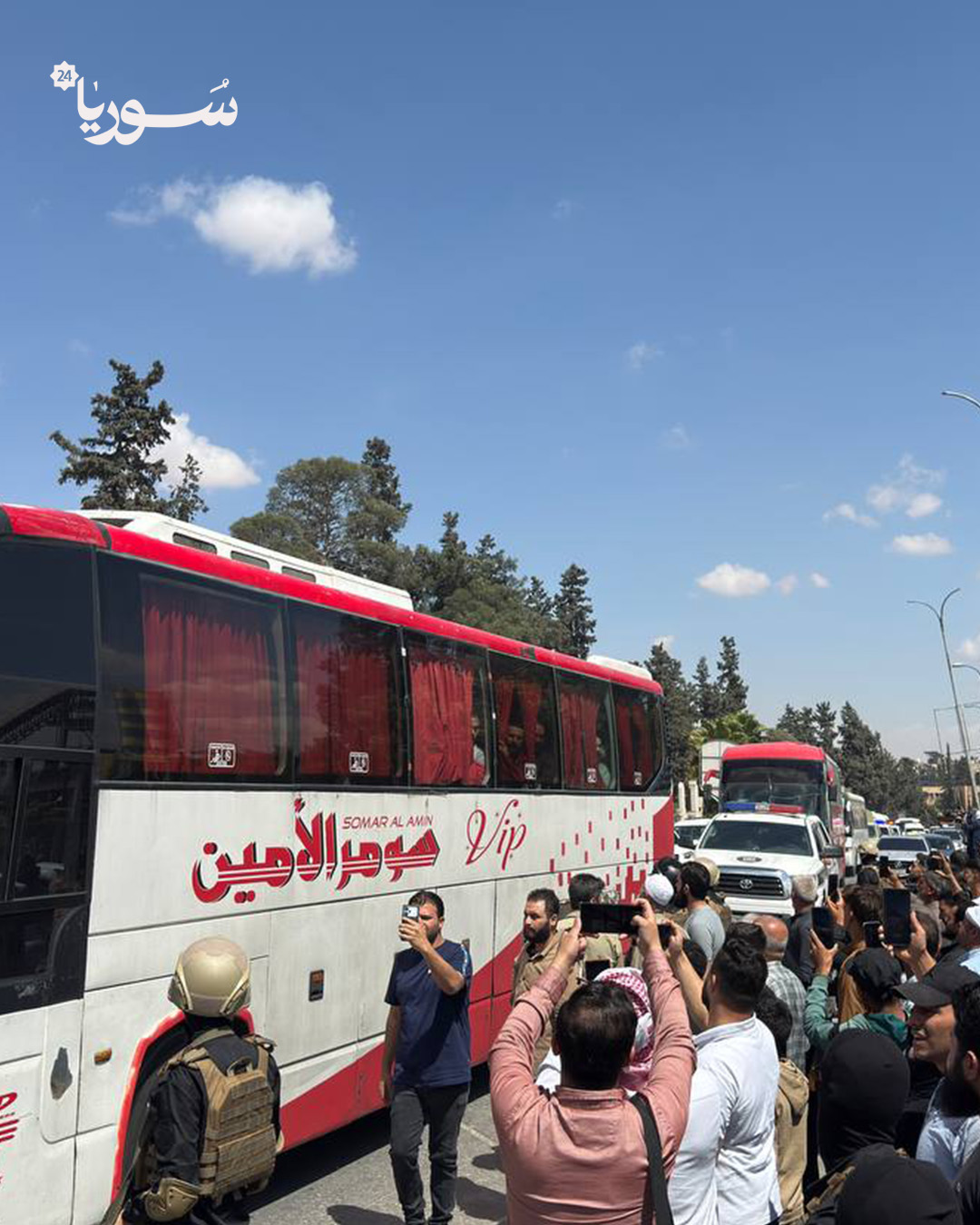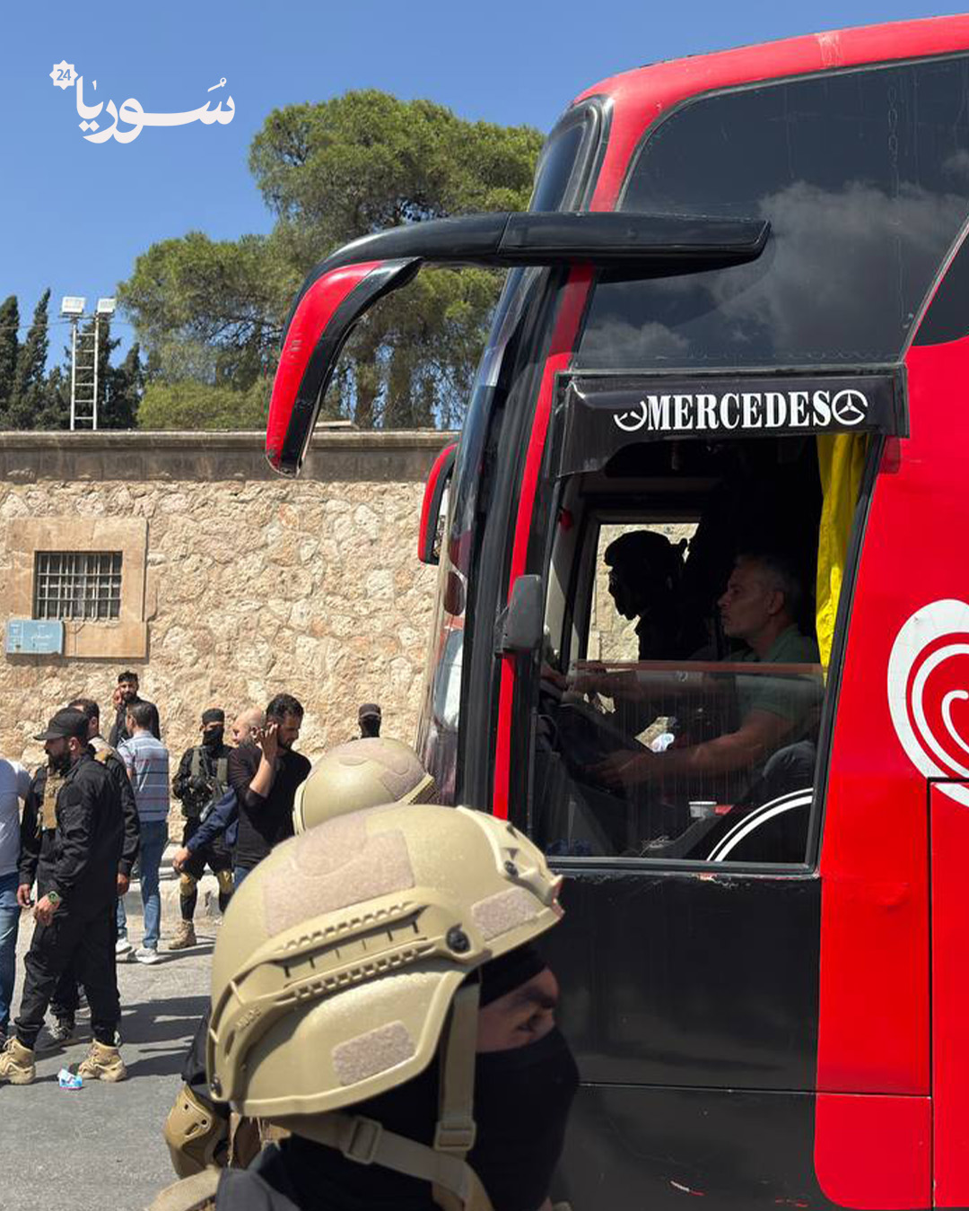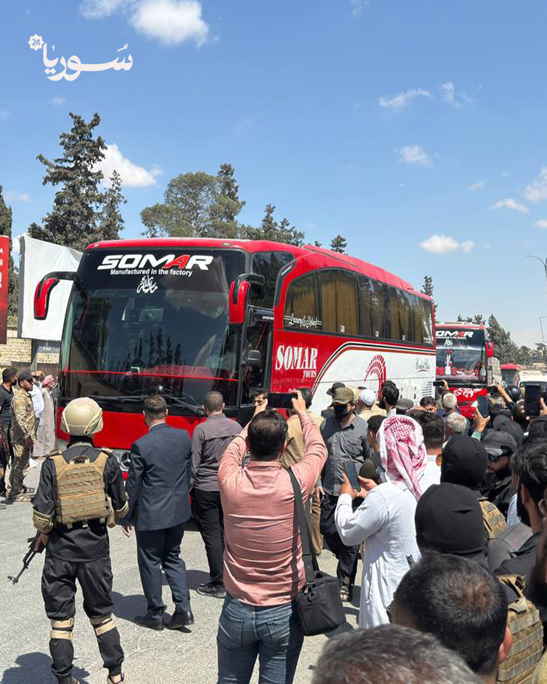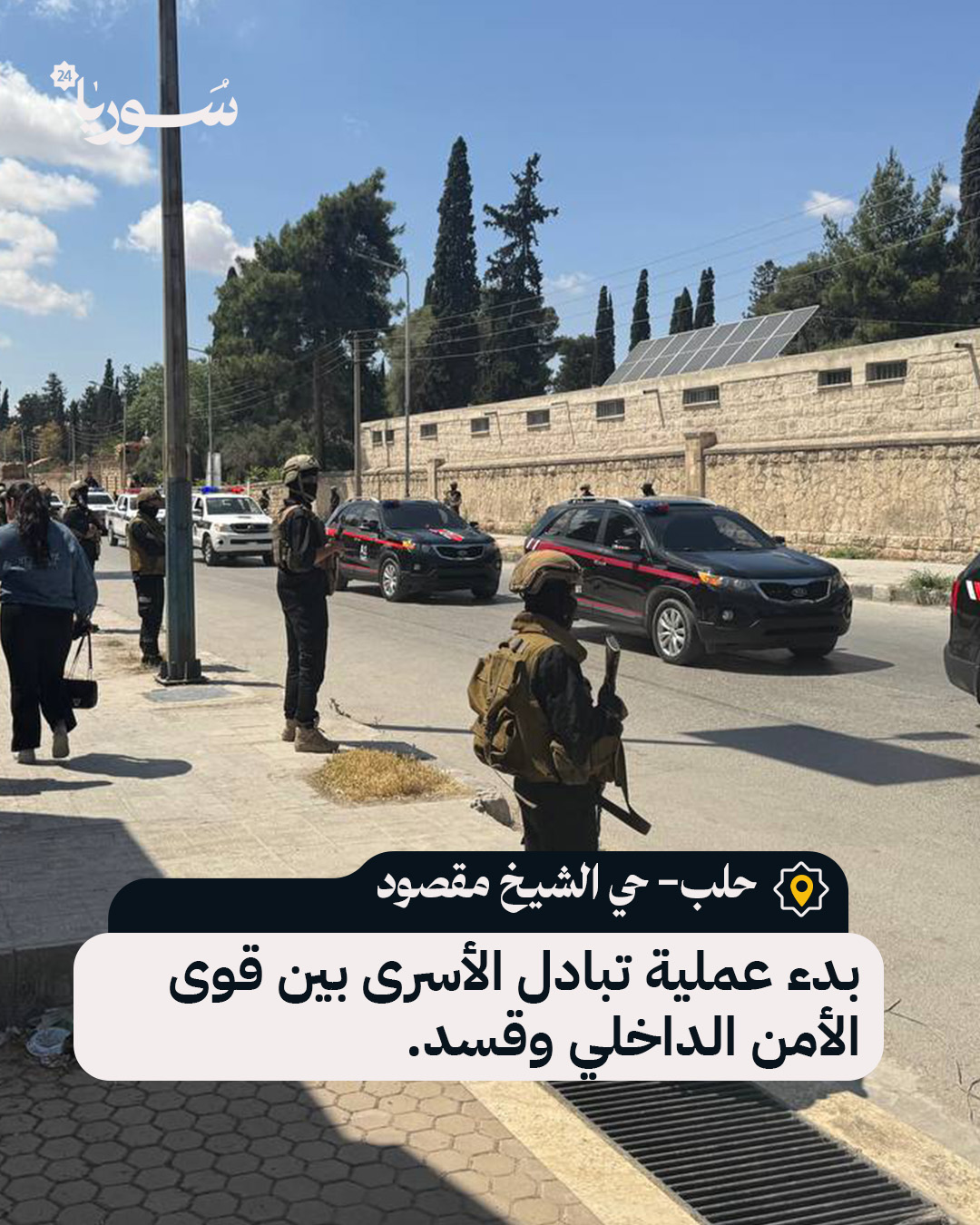 صور من عملية تبادل الأسرى بين قوى الأمن الداخلي وقسد في مدينة حلب بموجب اتفاقها مع الحكومة السورية