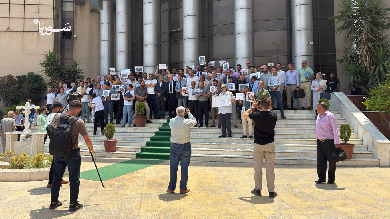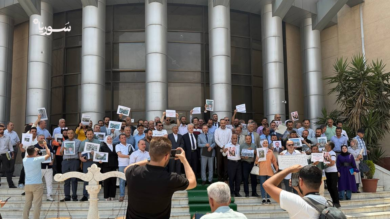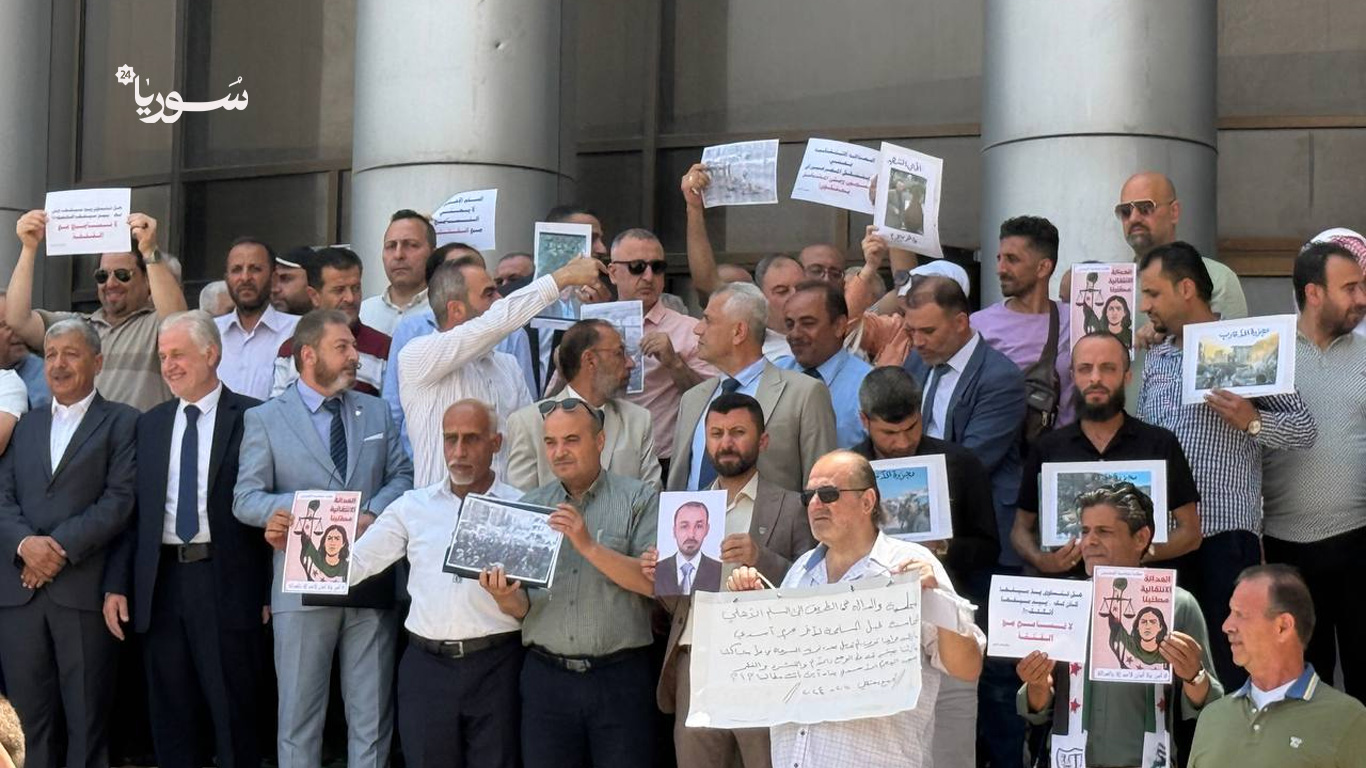 نفّذ عدد من المحامين والحقوقيين السوريين ظهر اليوم، وقفة تضامنية في ساحة القصر العدلي بمدينة حلب، احتجاجًا على ما وصفوه بمحاولات “تبييض الجرائم” من خلال تقديم شخصيات أمنية مثيرة للجدل كرموز لـ “السلم الأهلي”، في تجاهل فاضح لمبادئ العدالة الانتقالية وحقوق ضحايا الانتهاكات الجسيمة التي ارتُكبت بحق الشعب السوري.