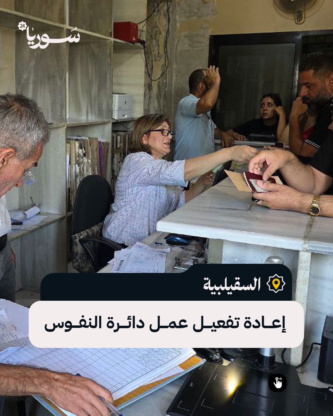 وأفاد مراسل منصة سوريا ٢٤ في حماة، أن دائرة الأحوال المدنية في السقيلبية، والتي تُعَدّ من الدوائر الرئيسية التي تخدم أكثر من 50 قرية وبلدة في المنطقة، شهدت خلال الأيام القليلة الماضية إقبالاً ملحوظًا من المواطنين الراغبين في استخراج قيود رسمية للولادات، وتثبيت الوفيات، بالإضافة إلى طلبات الطلاق والزواج.