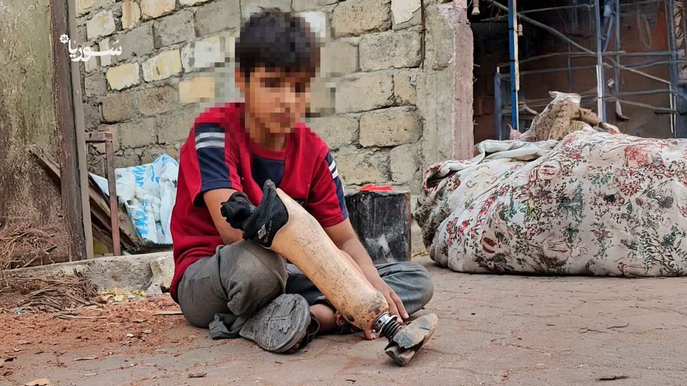 تقول الجدة أم محمود، التي تتولى رعاية الطفل في حديث لمنصة سوريا ٢٤: “بينما كانا في طريقهما للملعب، انفجر بهما لغم أرضي، ففقد يزن قدمه اليمنى وبصره، وأصيب أسامة بإصابات خطيرة أُزيل على إثرها نصف كبده بسبب الشظايا”.