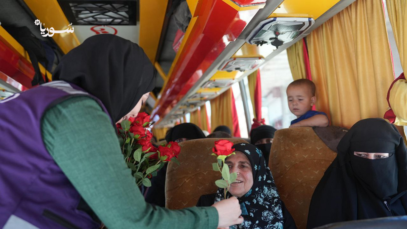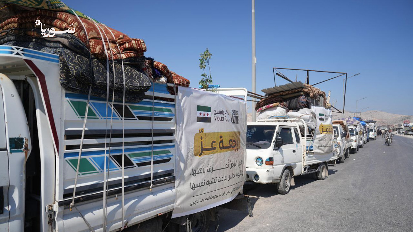 وأضاف أن القافلة انطلقت بأربع حافلات كبيرة تزيّنت بعبارات ترحيب وأعلام رمزية، ورافقها أكثر من مئة شاحنة لنقل أثاث العوائل مع عشرات المتطوعين من منظمة بنفسج، فيما خُصّص للأطفال العائدين حقائب ملونة مليئة بالألعاب والهدايا، لمحاولة تخفيف وطأة العودة من جهة، ورسم البسمة على وجوه لم تعرف الطفولة كما ينبغي.