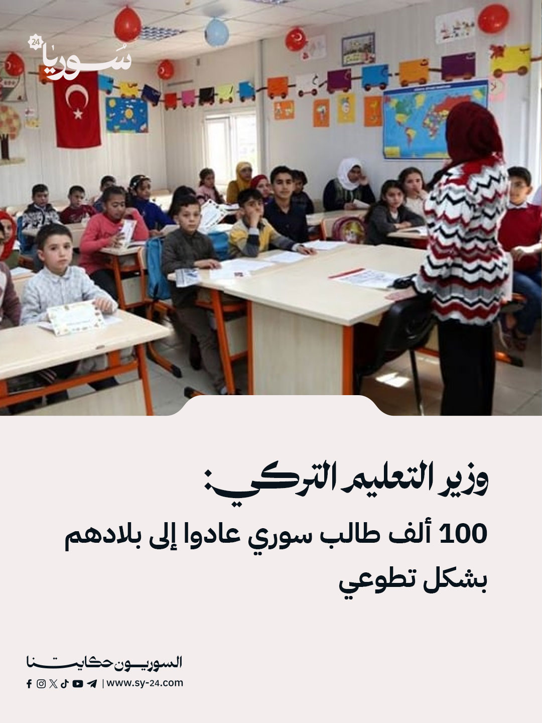 📌 عاد بحسب الإحصائيات وبشكل طوعي حوالي 100 ألف طالب إلى سوريا