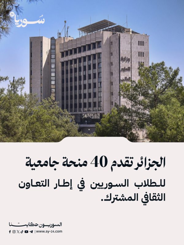 الجزائر تقدم 40 منحة جامعية للطلاب السوريين في إطار التعاون الثقافي المشترك