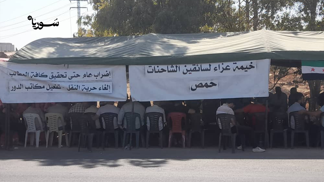ومنذ أكثر من أسبوع، يعتصم العشرات من سائقي الشاحنات في خيمة كبيرة نُصبت على الأوتوستراد الدولي الرابط بين حمص وحماة، تحديداً عند مدخل تلبيسة، حيث يجتمع السائقون ليل نهار، في مشهد يعكس عمق الأزمة وصمود المضربين.