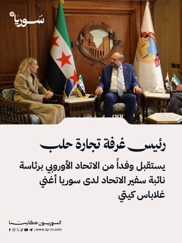 رئيس غرفة تجارة حلب يستقبل وفداً من الاتحاد الأوروبي برئاسة نائبة سفير الاتحاد لدى سوريا أغني غلاباس كيتي.