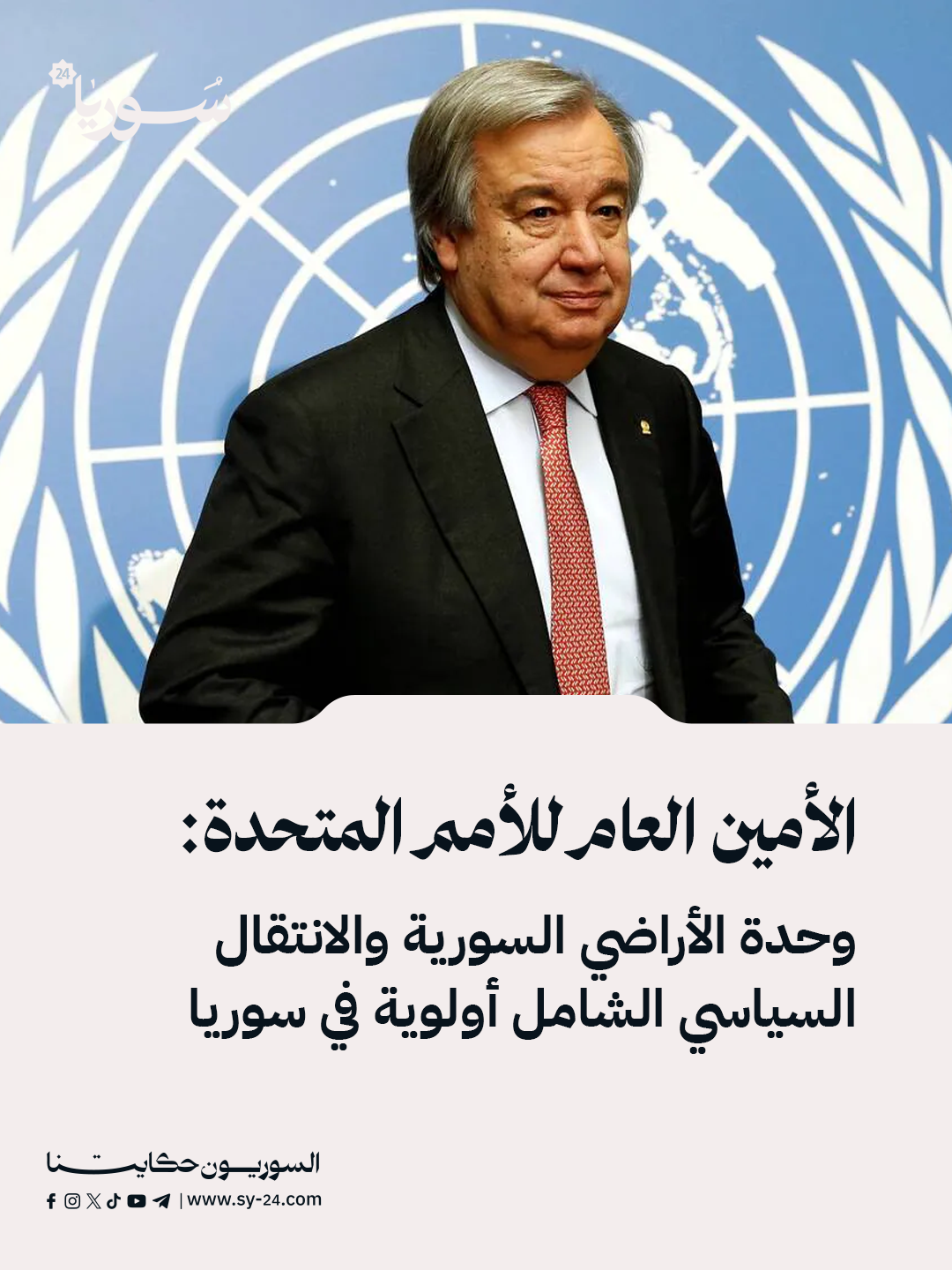 الأمين العام للأمم المتحدة: وحدة الأراضي السورية والانتقال السياسي الشامل أولوية في سوريا