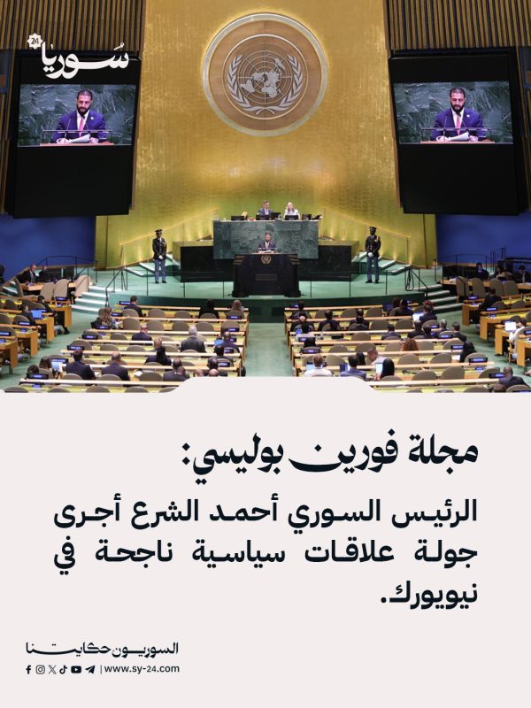 مجلة فورين بوليسي: الرئيس السوري أحمد الشرع أجرى جولة علاقات سياسية ناجحة في نيويورك