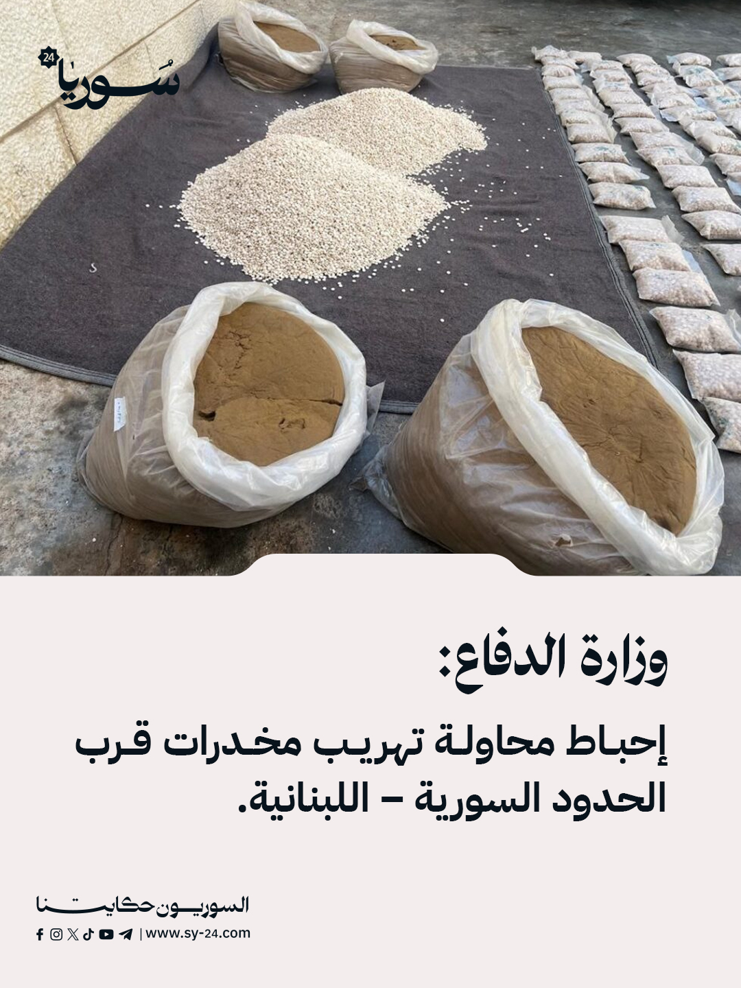 وزارة الدفاع: إحباط محاولة تهريب مخدرات قرب الحدود السورية – اللبنانية