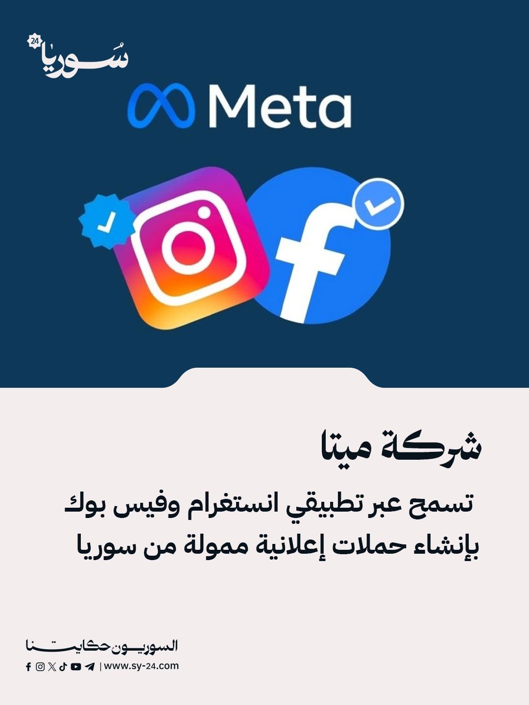 شركة ميتا تسمح عبر تطبيقي انستغرام وفيس بوك بإنشاء حملات إعلانية ممولة من سوريا