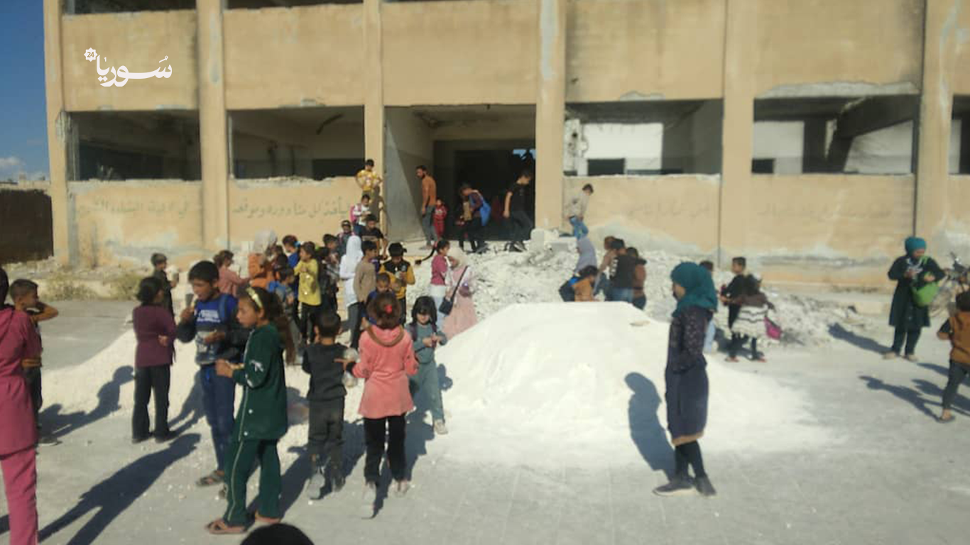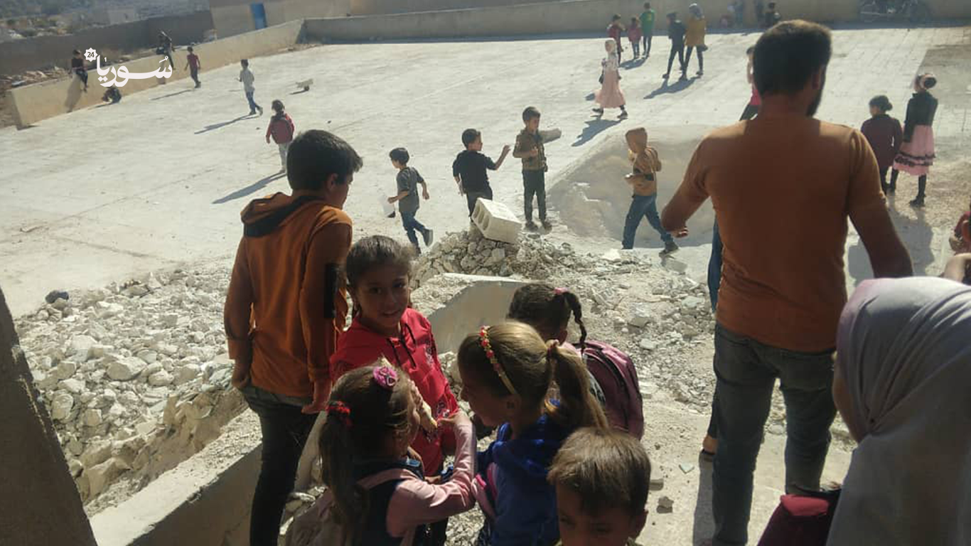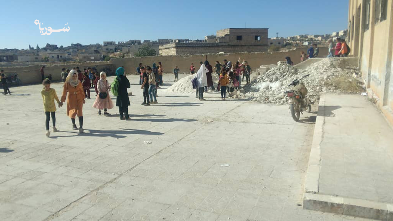 في مدينة كفرنبل بريف إدلب الجنوبي، حيث ما تزال آثار الدمار ماثلة في الأبنية والشوارع، بدأ نحو 600 طالب وطالبة عامهم الدراسي الجديد في مدارس تفتقر إلى أبسط مقومات العملية التعليمية. فالمقاعد غير كافية، النوافذ والأبواب مفقودة، والبنية التحتية متهالكة، ما أجبر الأطفال على تلقي دروسهم جالسين فوق الأحجار أو الحصر.