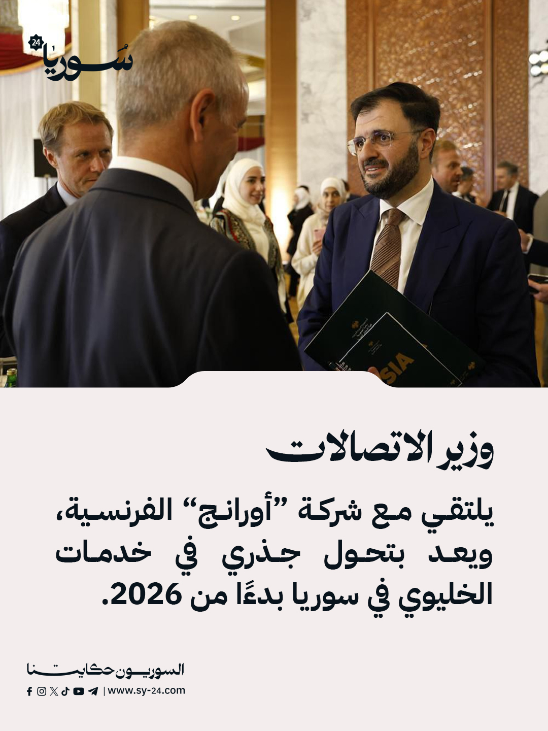 وزير الاتصالات يلتقي مع وفد من شركة “أورانج” الفرنسية، ويعد بتحول جذري في خدمات الاتصال الخليوي في سوريا بدءًا من مطلع 2026.