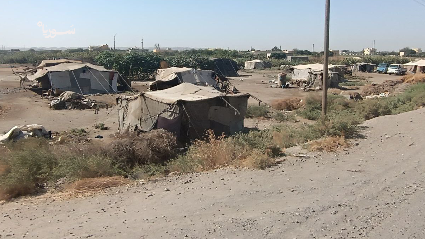 يقطن المخيم نحو 500 شخص، معظمهم من أبناء ريف دير الزور الشرقي الذين اضطروا للنزوح بعد دمار منازلهم وغياب فرص العمل في مناطقهم. يعيش هؤلاء بين خيارين صعبين: البقاء في المخيم بظروف معيشية قاسية، أو العودة إلى قراهم المدمرة التي تفتقر لأبسط مقومات الحياة.