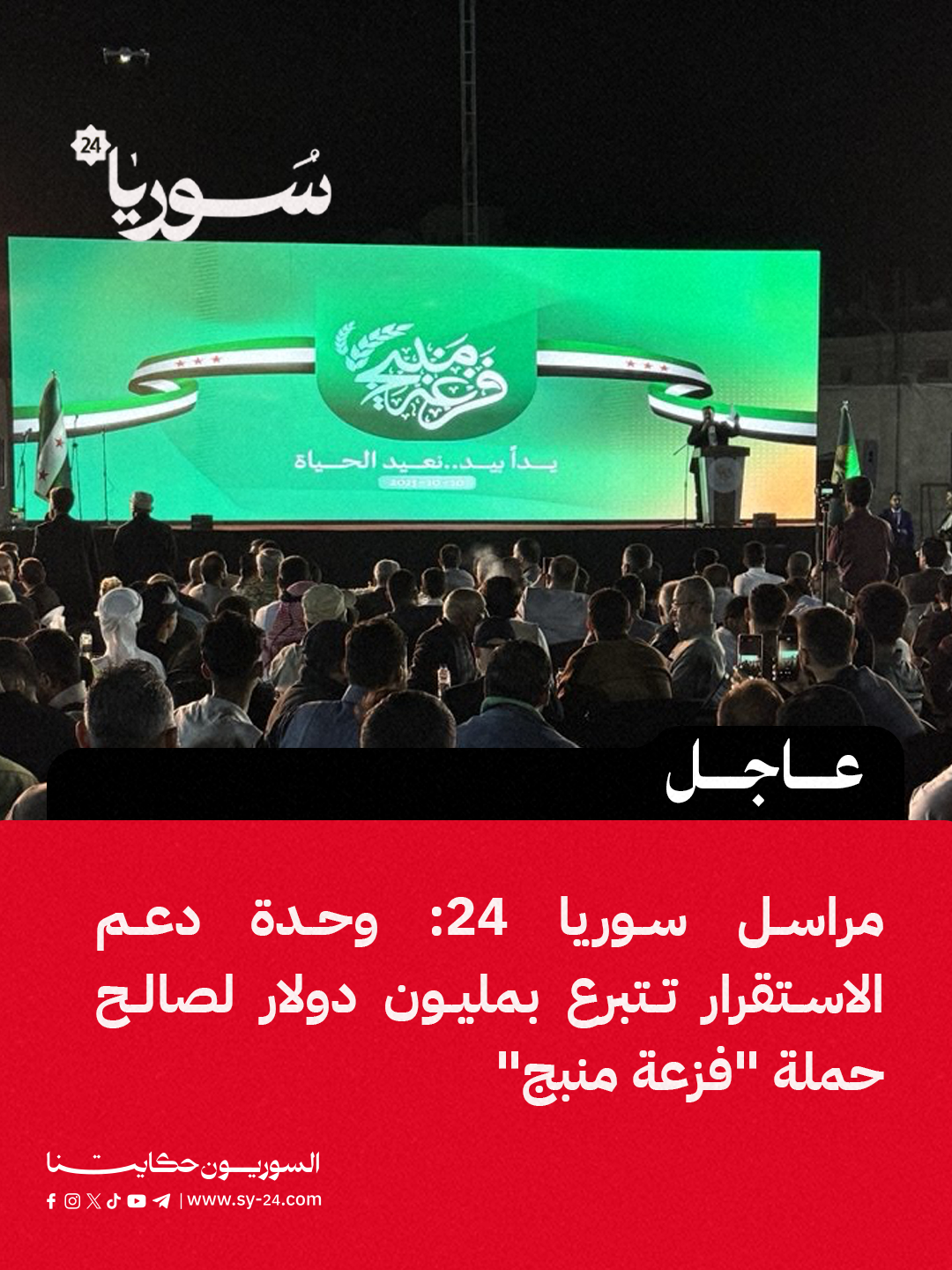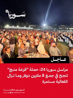 مراسل سوريا 24: حملة “فزعة منبج” تنجح في جمع 8 ملايين دولار وما تزال الفعالية مستمرة