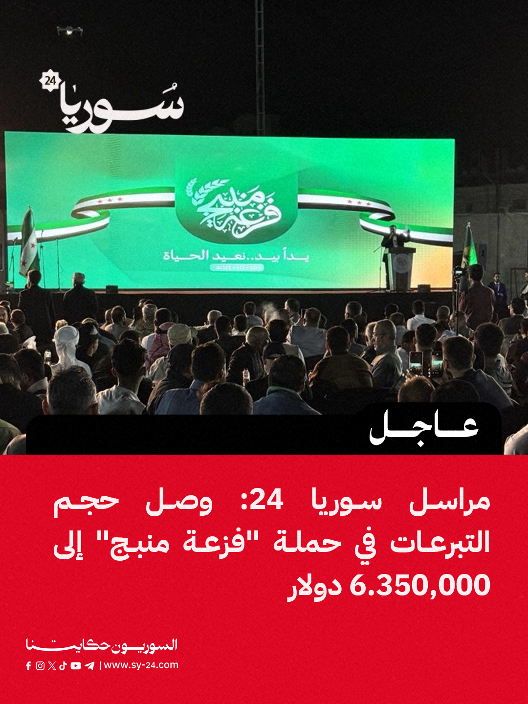 مراسل سوريا 24: وصل حجم التبرعات في حملة “فزعة منبج” إلى 6.350,000 دولار