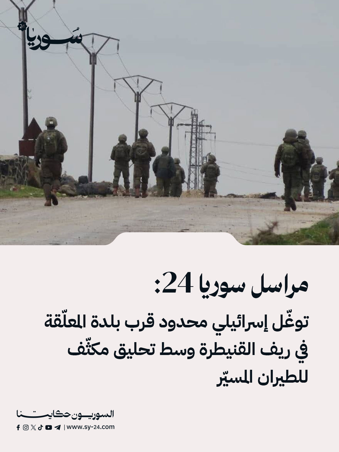 مراسل سوريا 24: توغّل إسرائيلي محدود قرب بلدة المعلّقة في ريف القنيطرة وسط تحليق مكثّف للطيران المسيّر