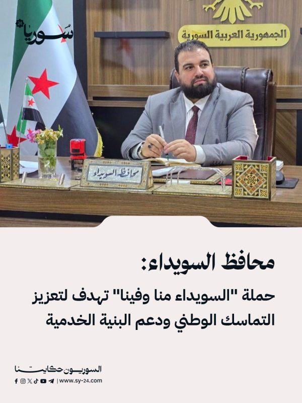 محافظ السويداء: حملة “السويداء منا وفينا” تهدف لتعزيز التماسك الوطني ودعم البنية الخدمية