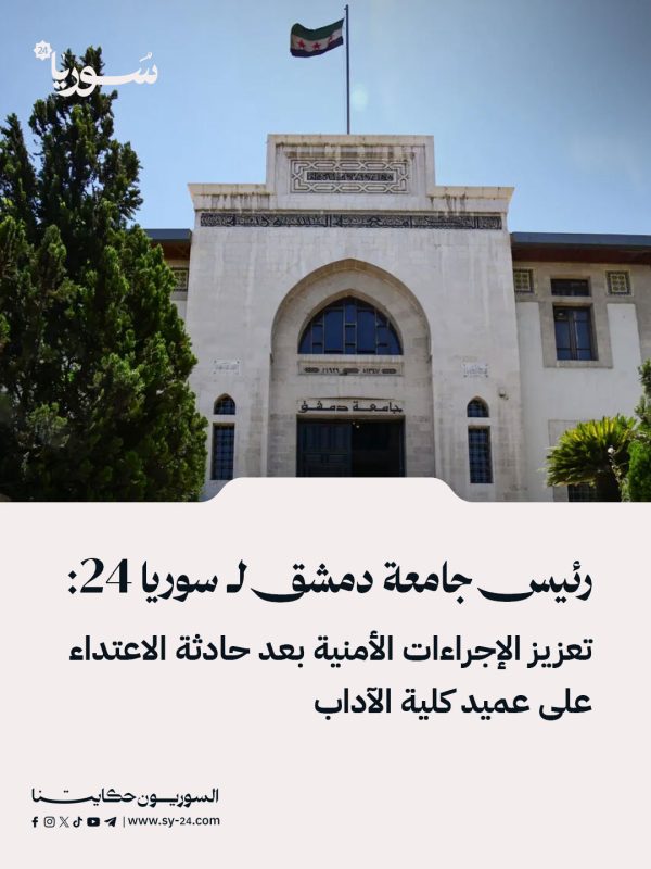 رئيس جامعة دمشق لـ سوريا 24: تعزيز الإجراءات الأمنية بعد حادثة الاعتداء على عميد كلية الآداب