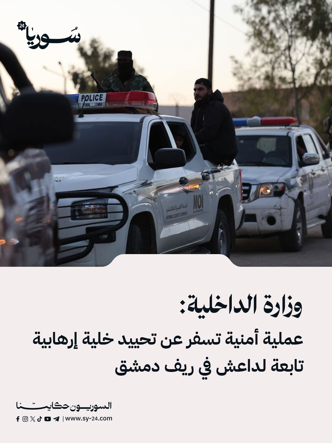 وزارة الداخلية: عملية أمنية تسفر عن تحييد خلية إرهابية تابعة لداعش في ريف دمشق