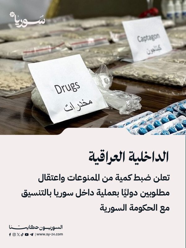 📌 المديرية العامة لمكافحة المخدرات نفذت عملية ميدانية نوعية داخل الأراضي السورية بالتنسيق مع إدارة مكافحة المخدرات السورية.