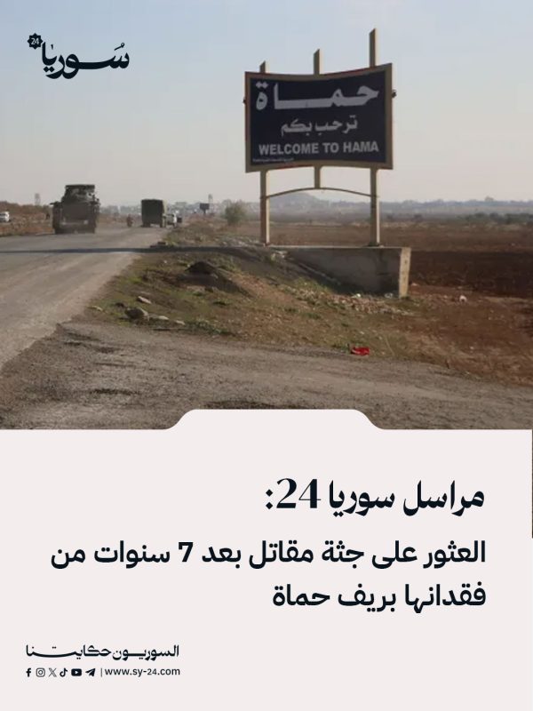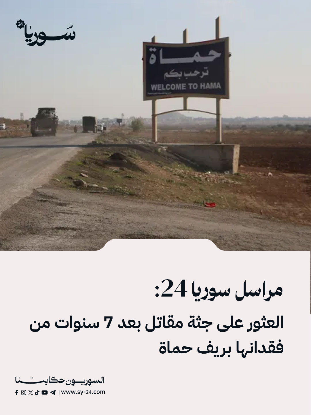 مراسل سوريا 24: العثور على جثة مقاتل بعد 7 سنوات من فقدانها بريف حماة