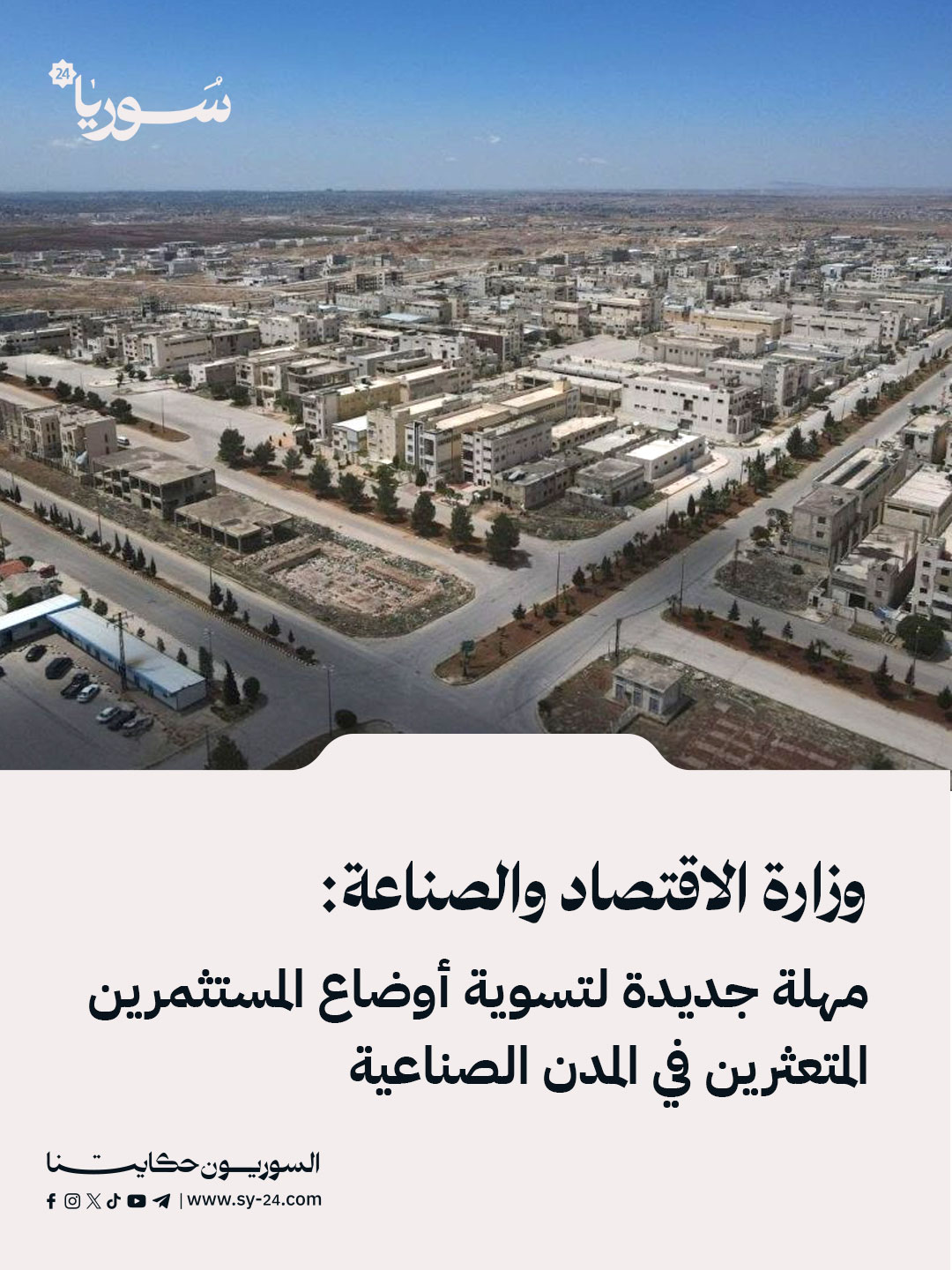 وزارة الاقتصاد والصناعة: مهلة جديدة لتسوية أوضاع المستثمرين المتعثرين في المدن الصناعية