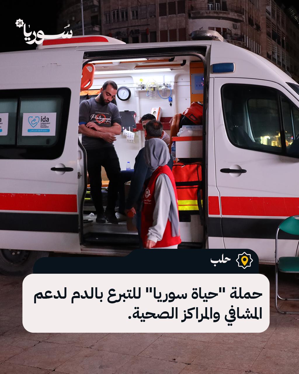 حلب: حملة “حياة سوريا” للتبرع بالدم لدعم المشافي والمراكز الصحية.