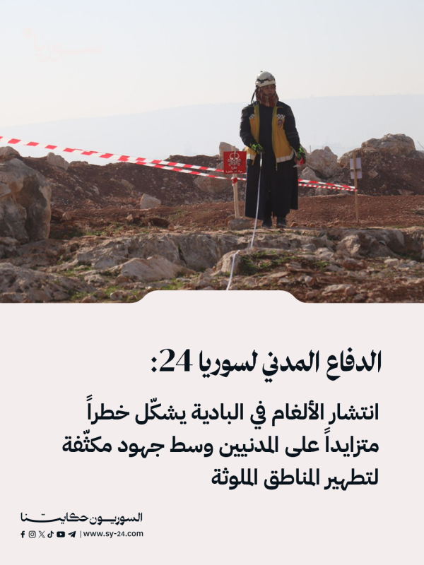 📌الدفاع المدني السوري ينسّق حالياً لإرسال فرق متخصصة للكشف عن الألغام وتطهير الحقول