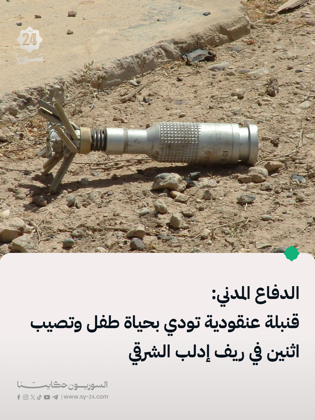 مقتل طفل وإصابة شقيقه وطفل آخر بجروح بليغة نتيجة انفجار قنبلة عنقودية من مخلفات قصف سابق في منطقة أبو الضهور بريف إدلب الشرقي