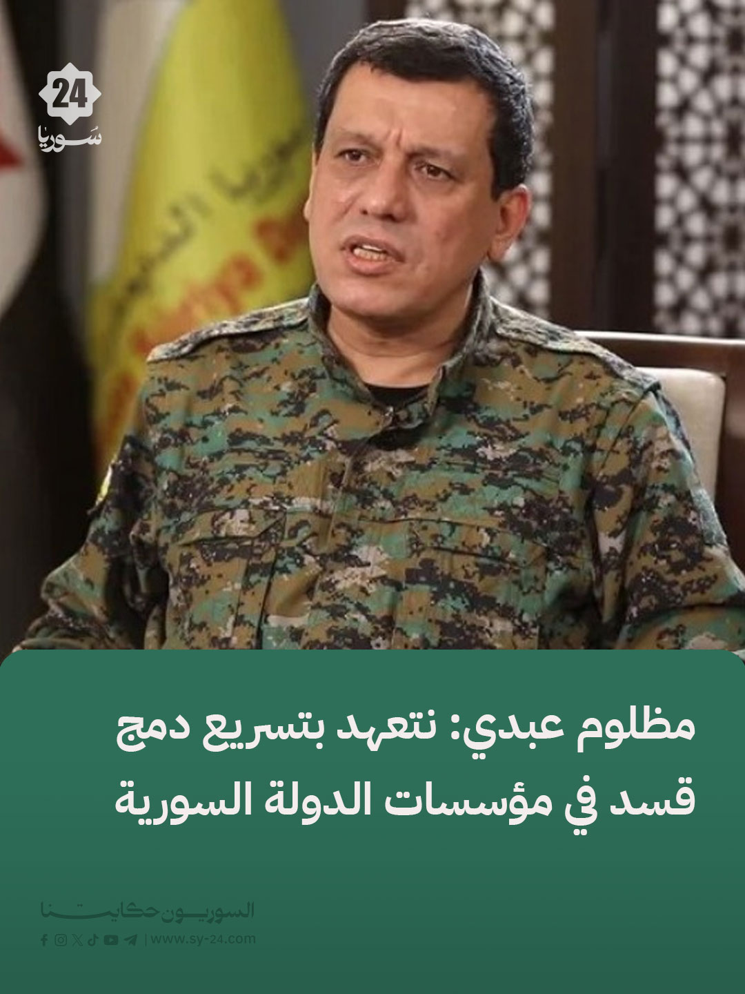 📌 نتعهد المضي في تسريع دمج قوات قسد ضمن البنية الرسمية للدولة السورية في إطار مسار سياسي جديد.