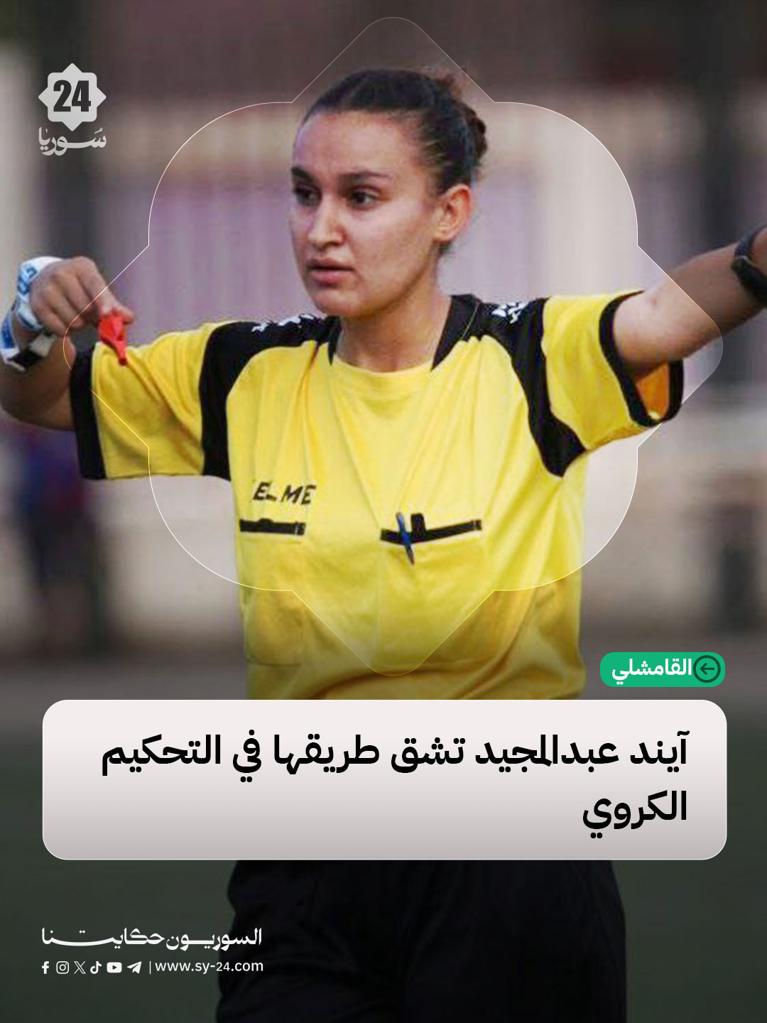 في خطوة لافتة داخل الملاعب السورية، أثبتت الشابة آيند عبدالمجيد، المولودة عام 2007 في مدينة القامشلي، حضورها القوي كإحدى أوائل الفتيات اللواتي يخضن مجال التحكيم الكروي في المنطقة. ورغم صغر سنها، استطاعت أن تفرض احترامها داخل الملعب بثقة وهدوء وحيادية عالية.