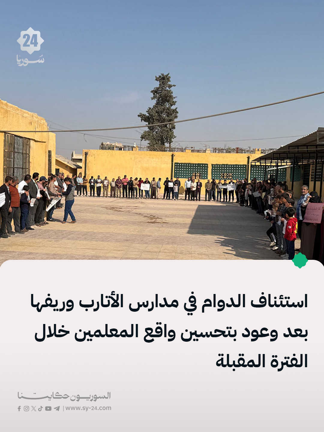 تقرر استئناف الدوام في مدارس الأتارب وريفها يوم الإثنين 2025/11/17م.