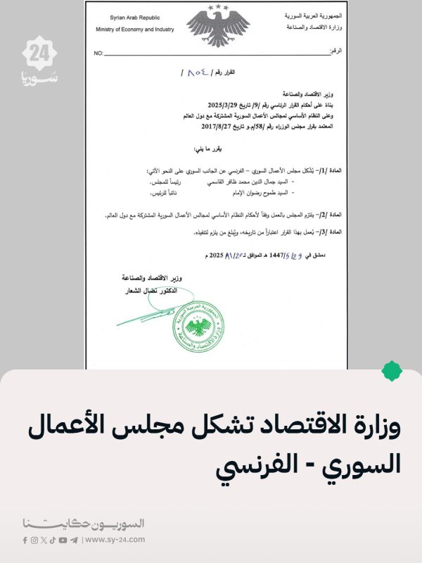 📌 قرار رسمي بتشكيل مجلس الأعمال السوري_ الفرنسي