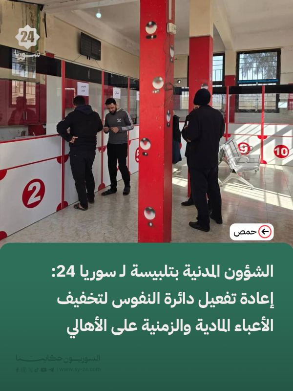 الشؤون المدنية بتلبيسة لـ سوريا 24: إعادة تفعيل دائرة النفوس للحد من أعباء الأهالي المادية