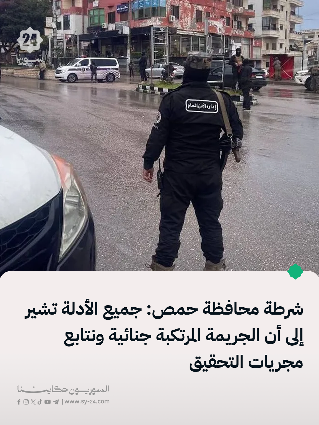 شرطة محافظة حمص: جميع الأدلة تشير إلى أن الجريمة المرتكبة جنائية ونتابع مجريات التحقيق