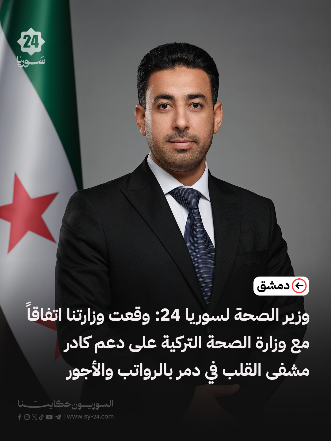 وزير الصحة السوري مصعب العلي لسوريا 24:
