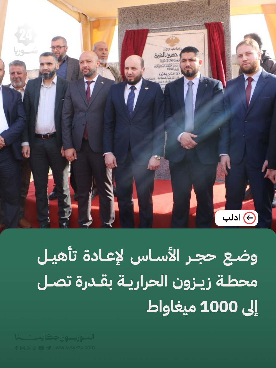 📌وزير الطاقة ووزير الطوارئ ومحافظا حماة وإدلب يضعون حجر الأساس لمشروع إعادة تأهيل محطة زيزون الحرارية في إدلب.