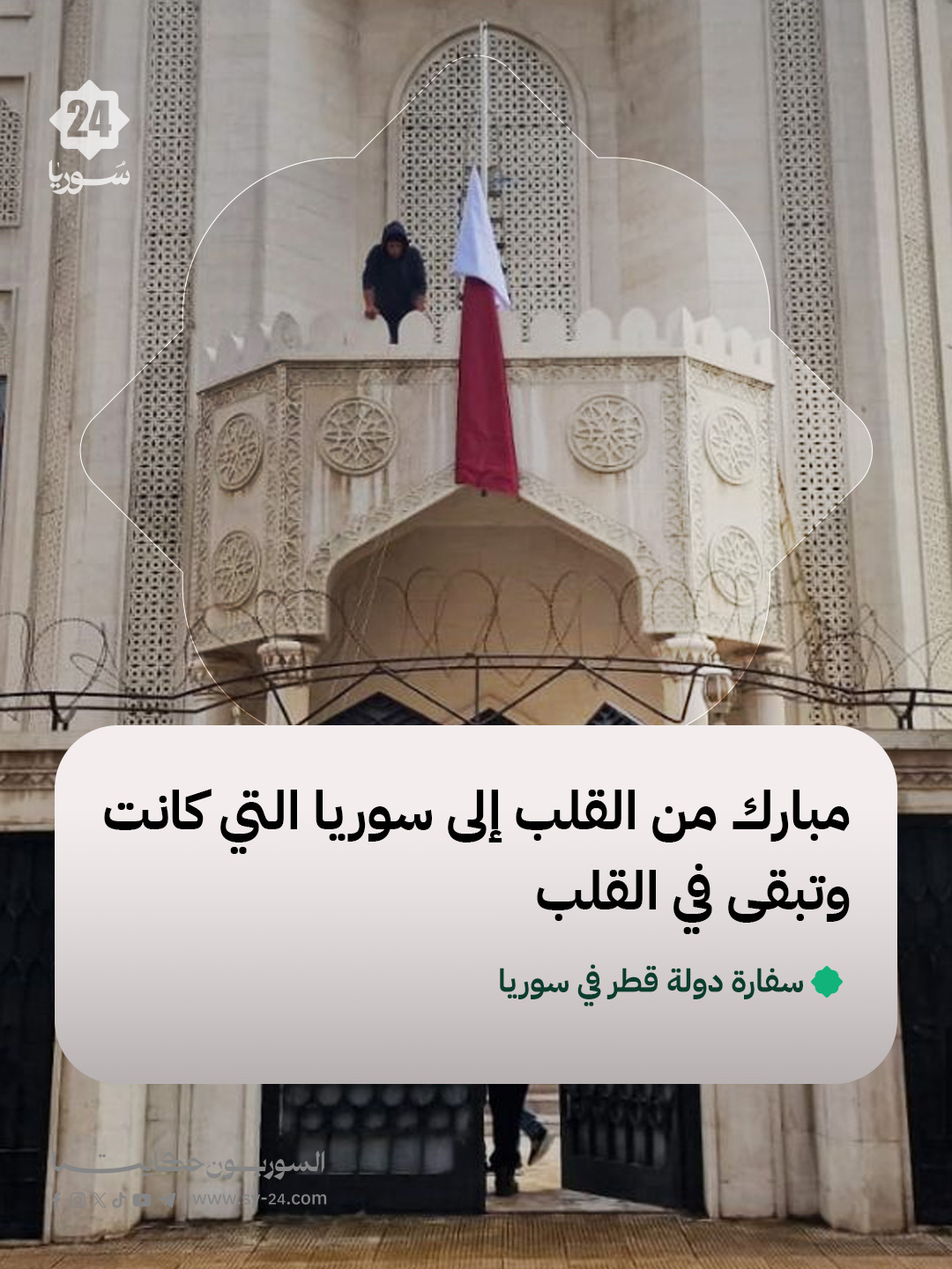 📌تتشرف سفارة دولة قطر أن تزف التهنئة للشعب السوري الكريم وأن تبارك للحكومة السورية في هذه الذكرى العظيمة داعياً الله سبحانه أن يحفظ هذا البلد ويديم عليه وعلى بلادنا الأمن والسلام والاستقرار